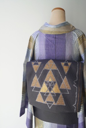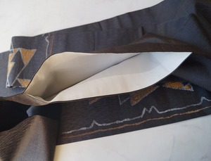 【なごや帯】蝋色 幾何学柄 透かし織り なごや帯