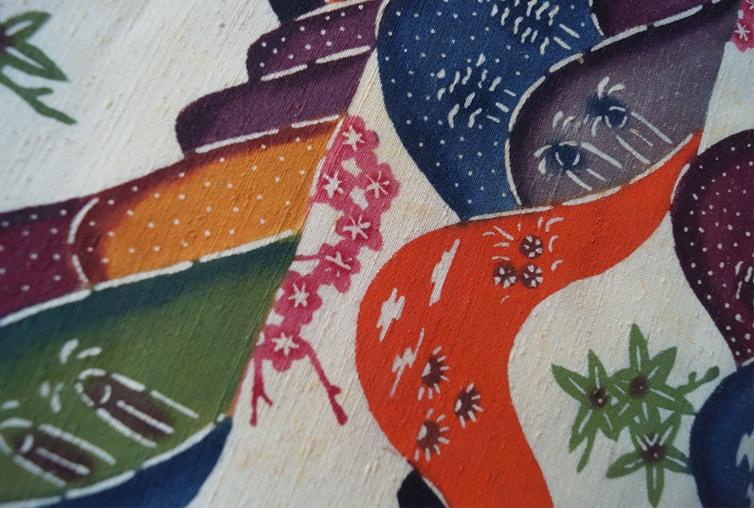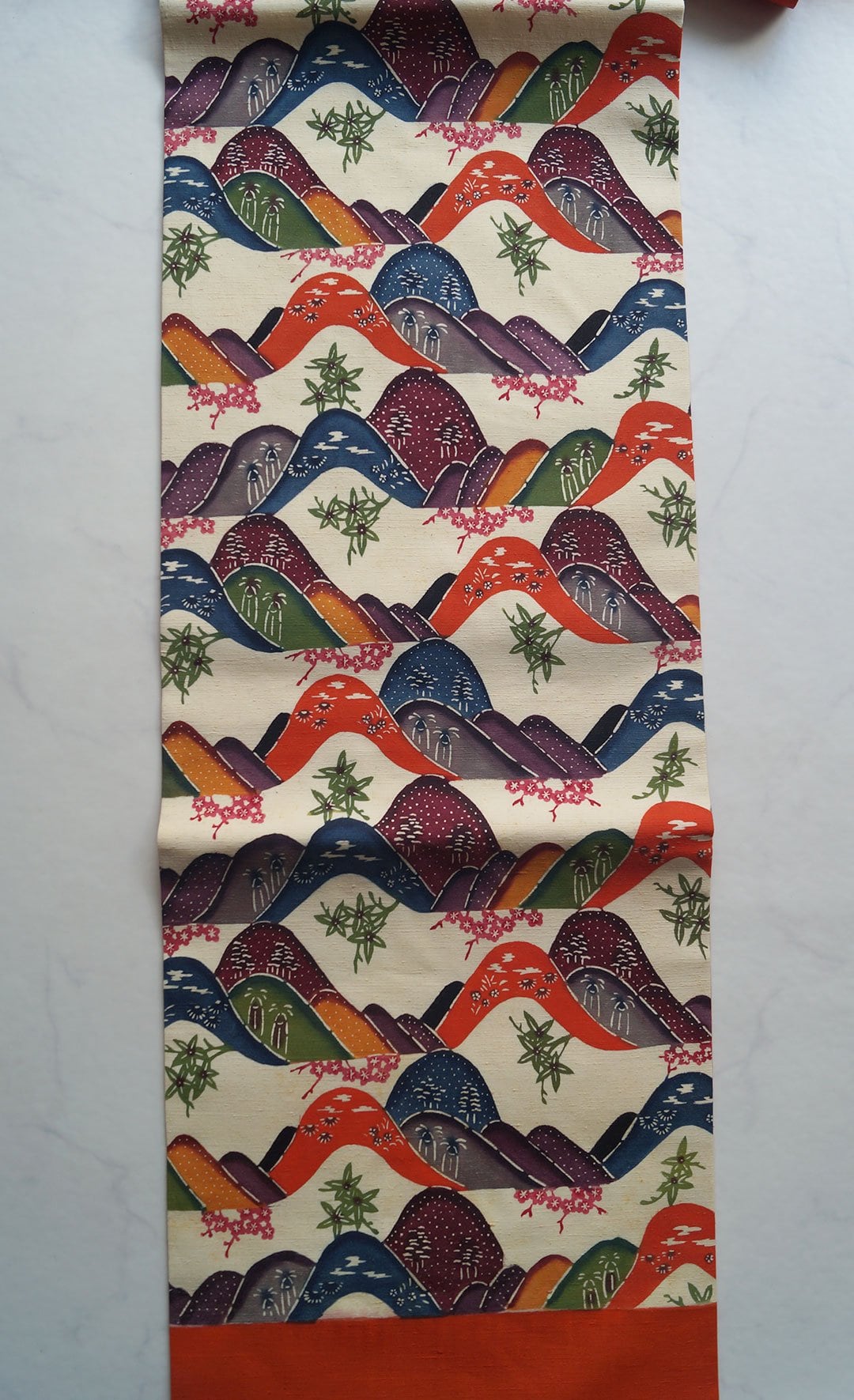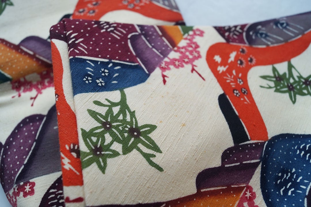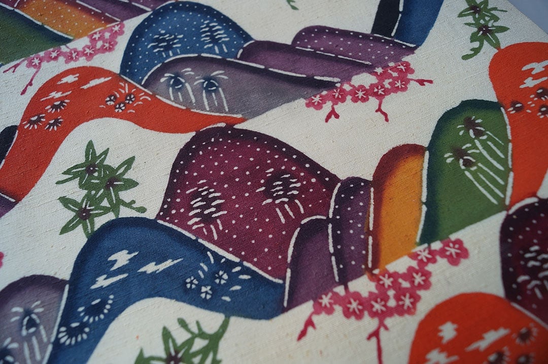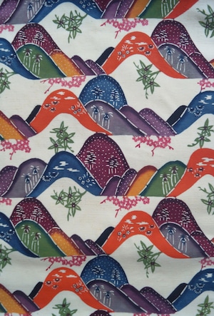 生成り色の地色に色とりどりの遠山文様が