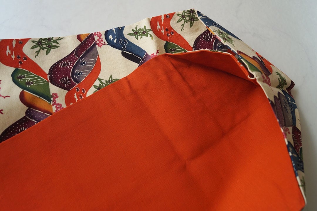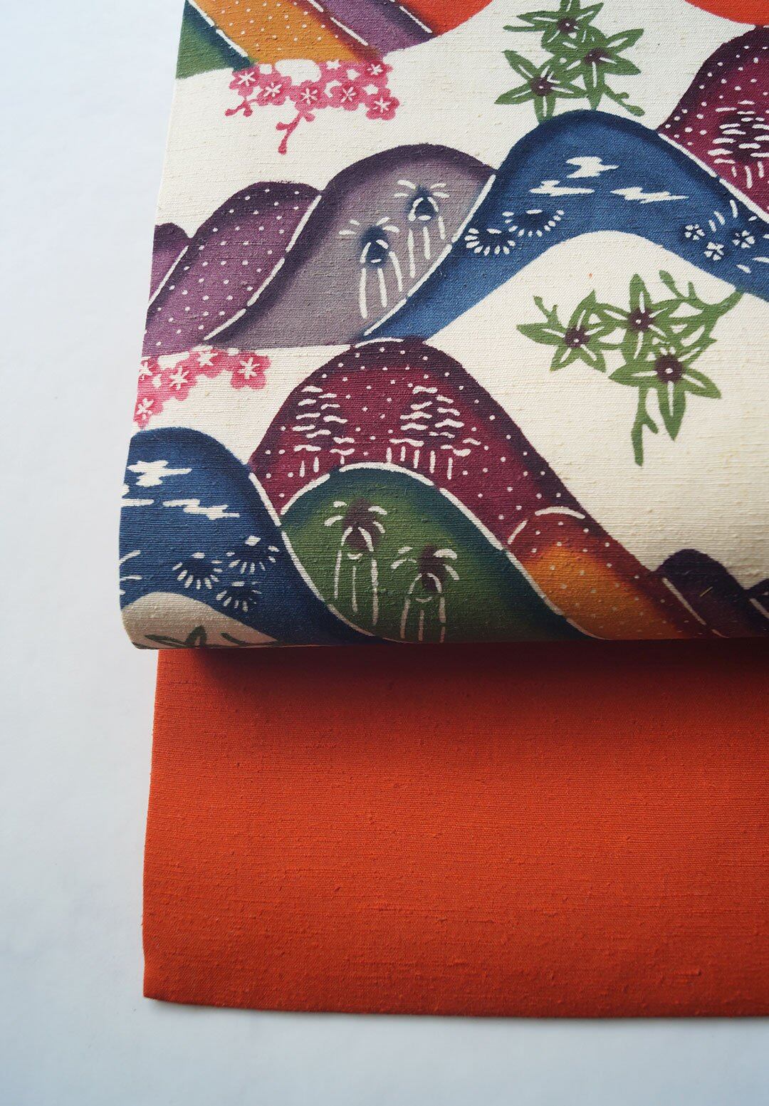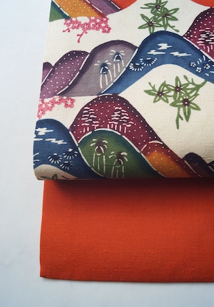 生成り色×朱色系の遠山文、