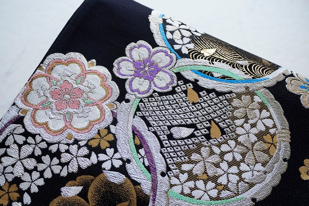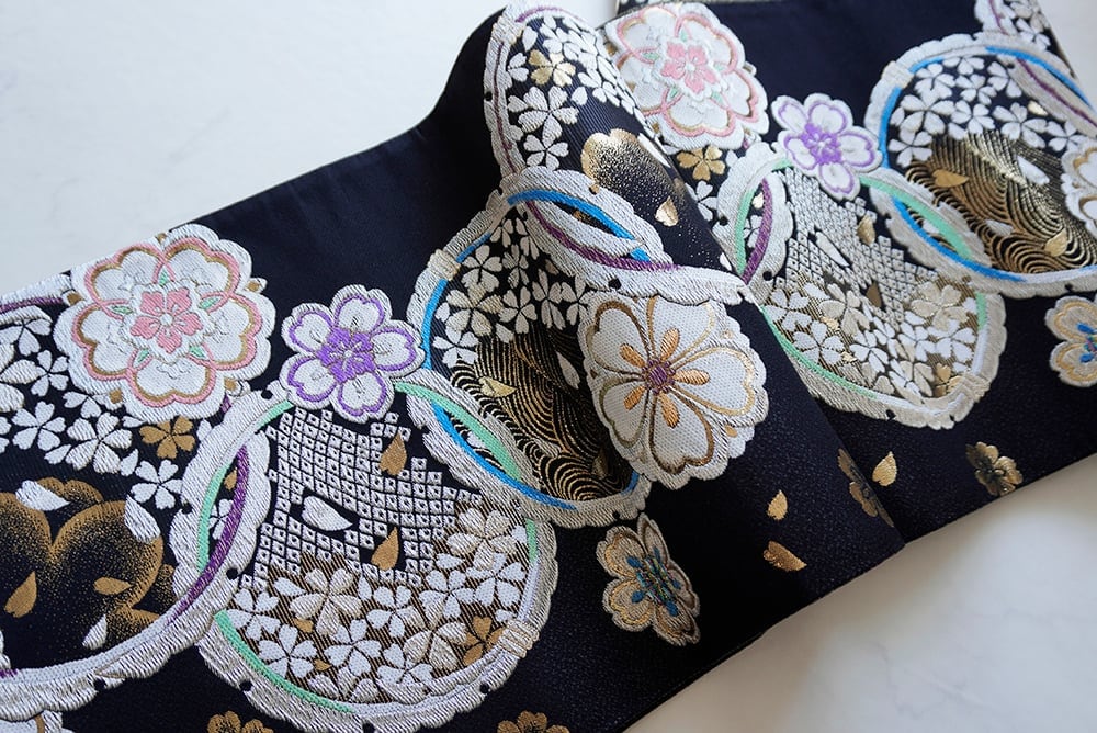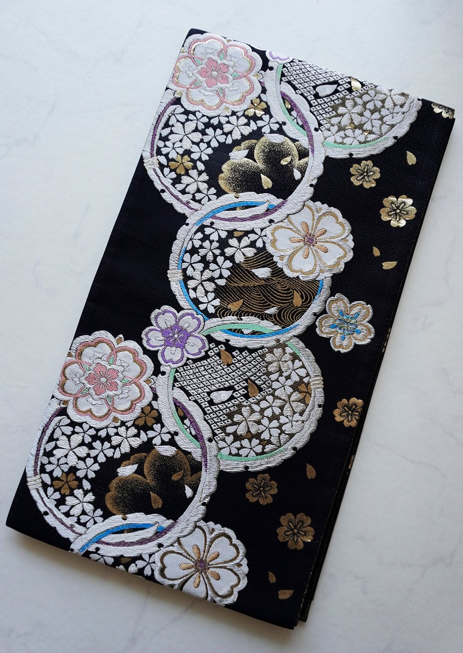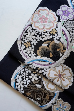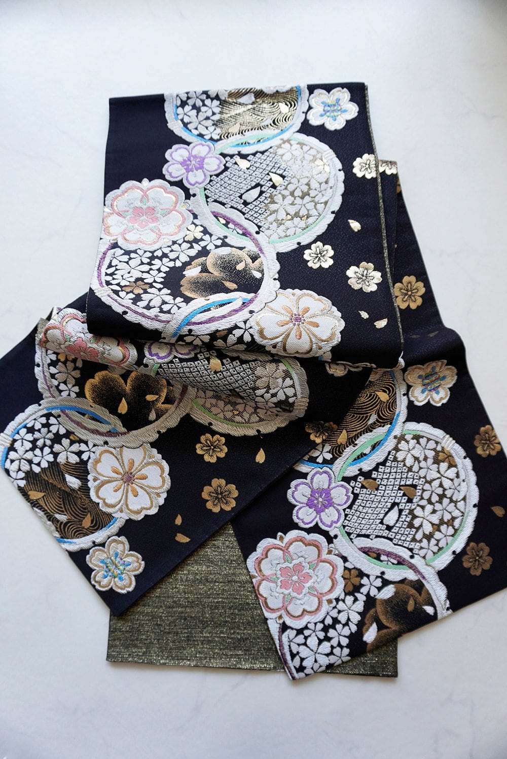【振袖用・ふくろ帯】 桜と雪輪文様 全通ふくろ帯