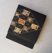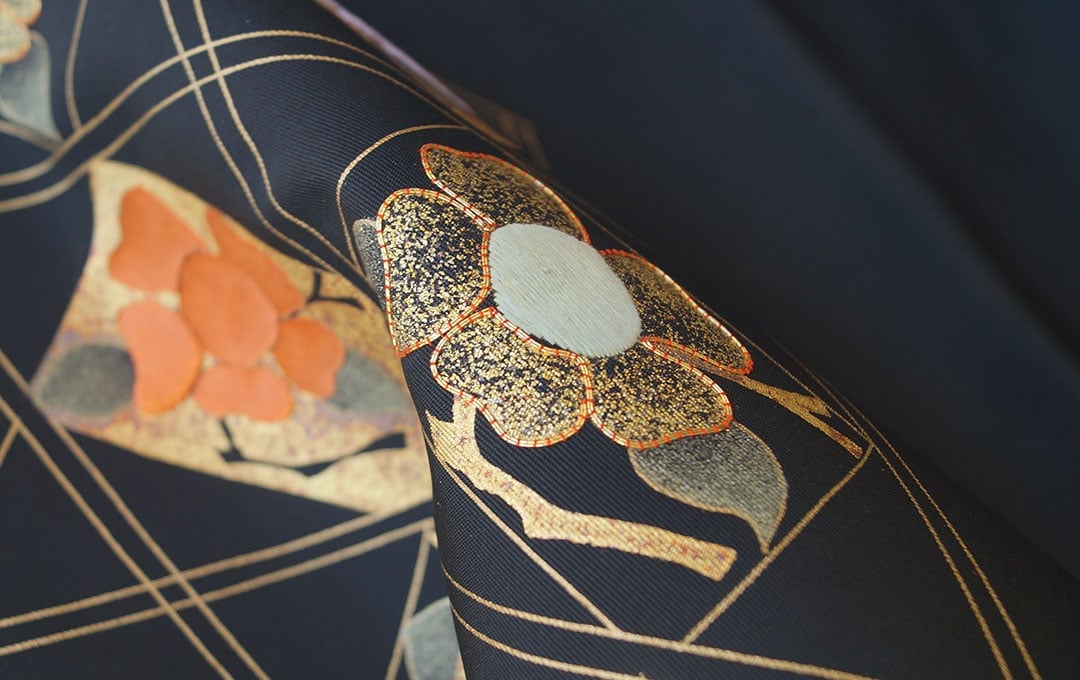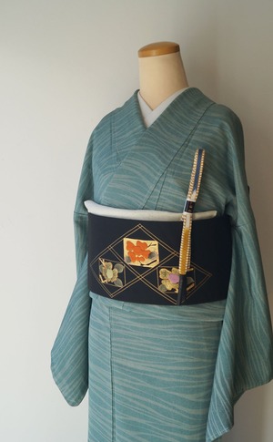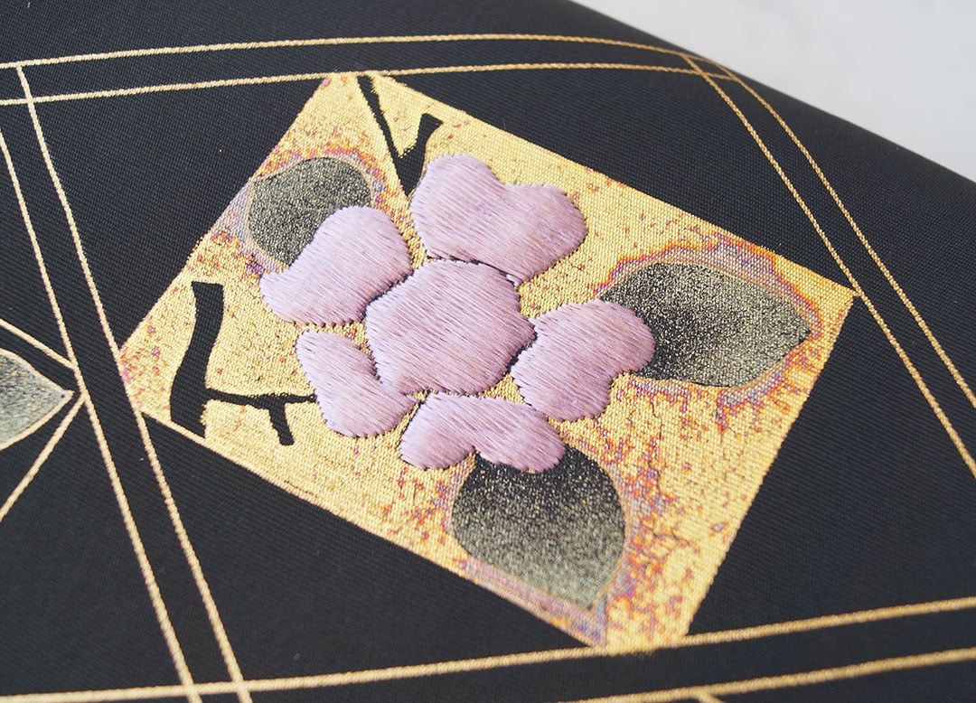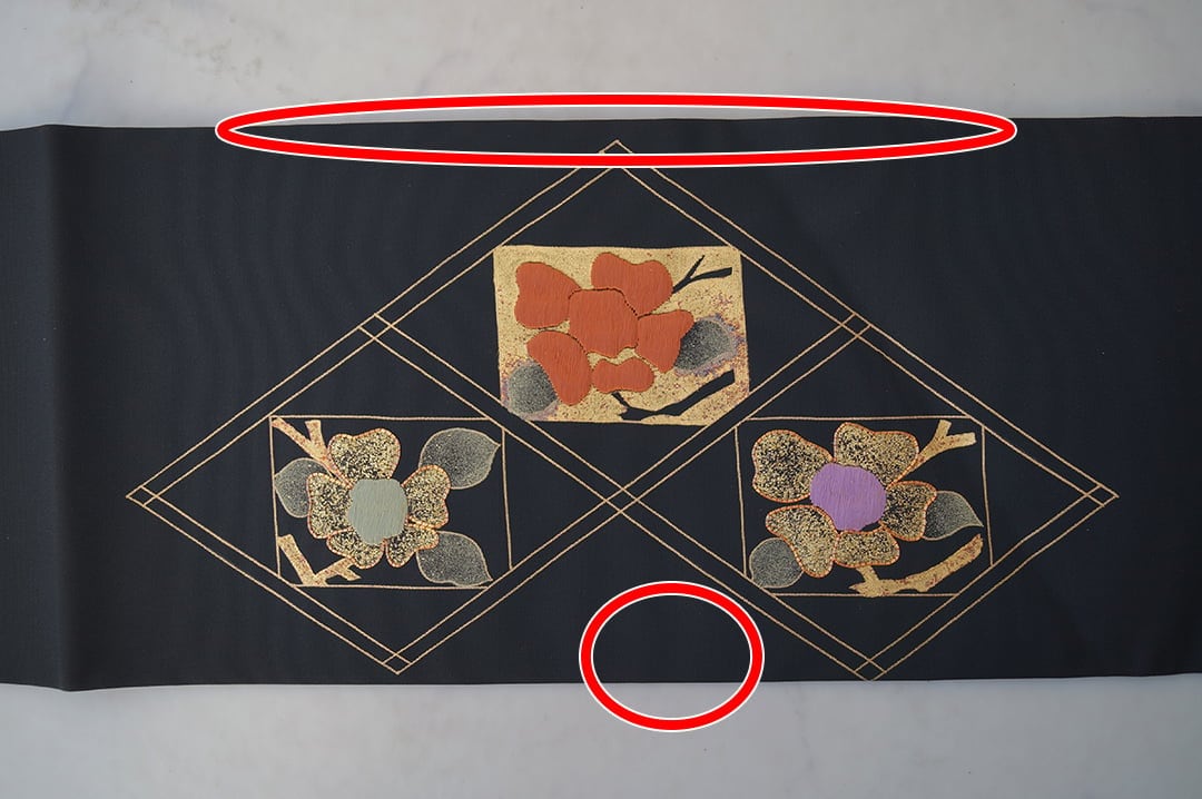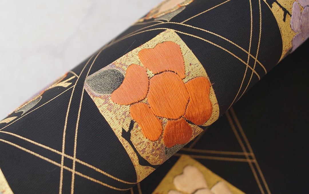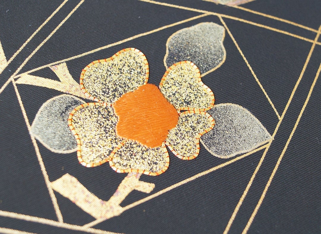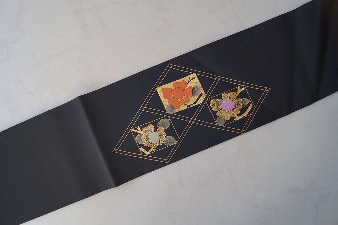 【なごや帯】黒色地 菱に椿文 塩瀬なごや帯