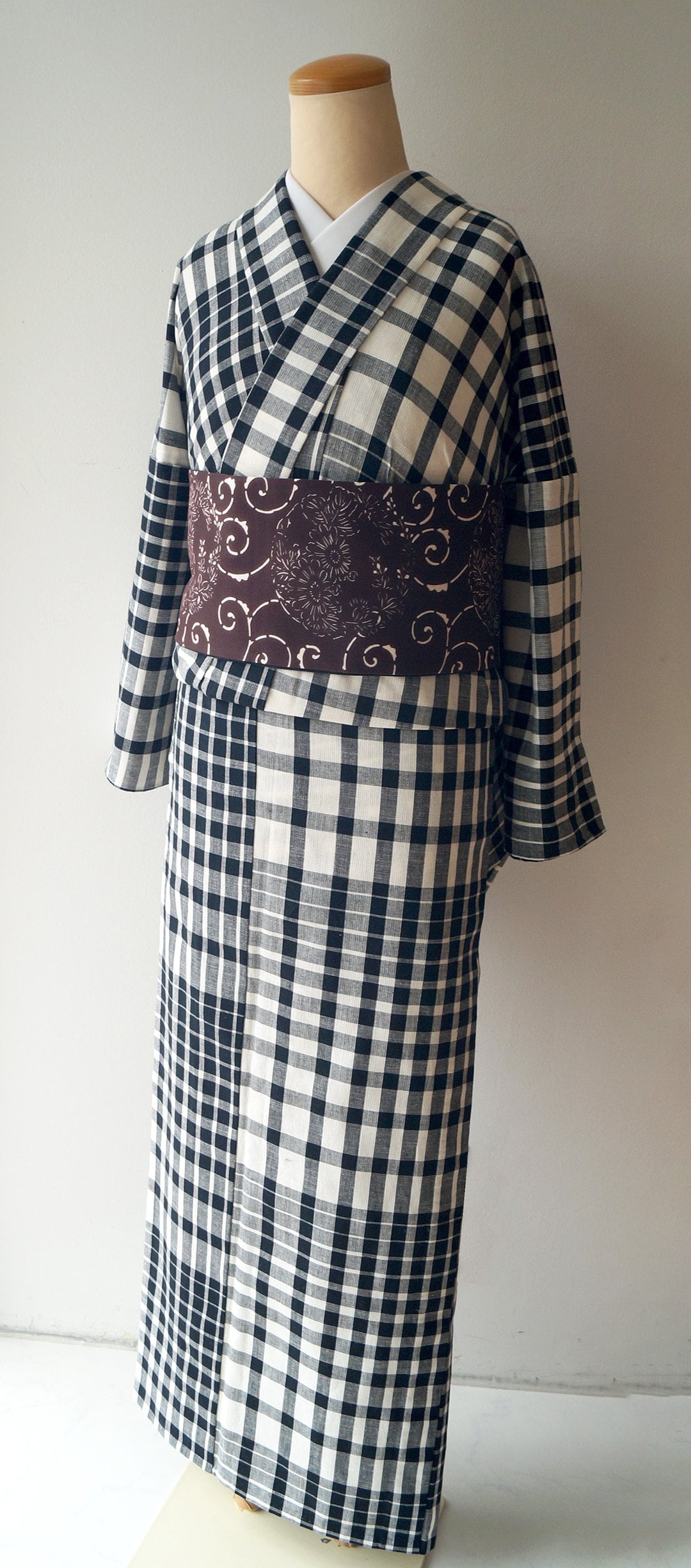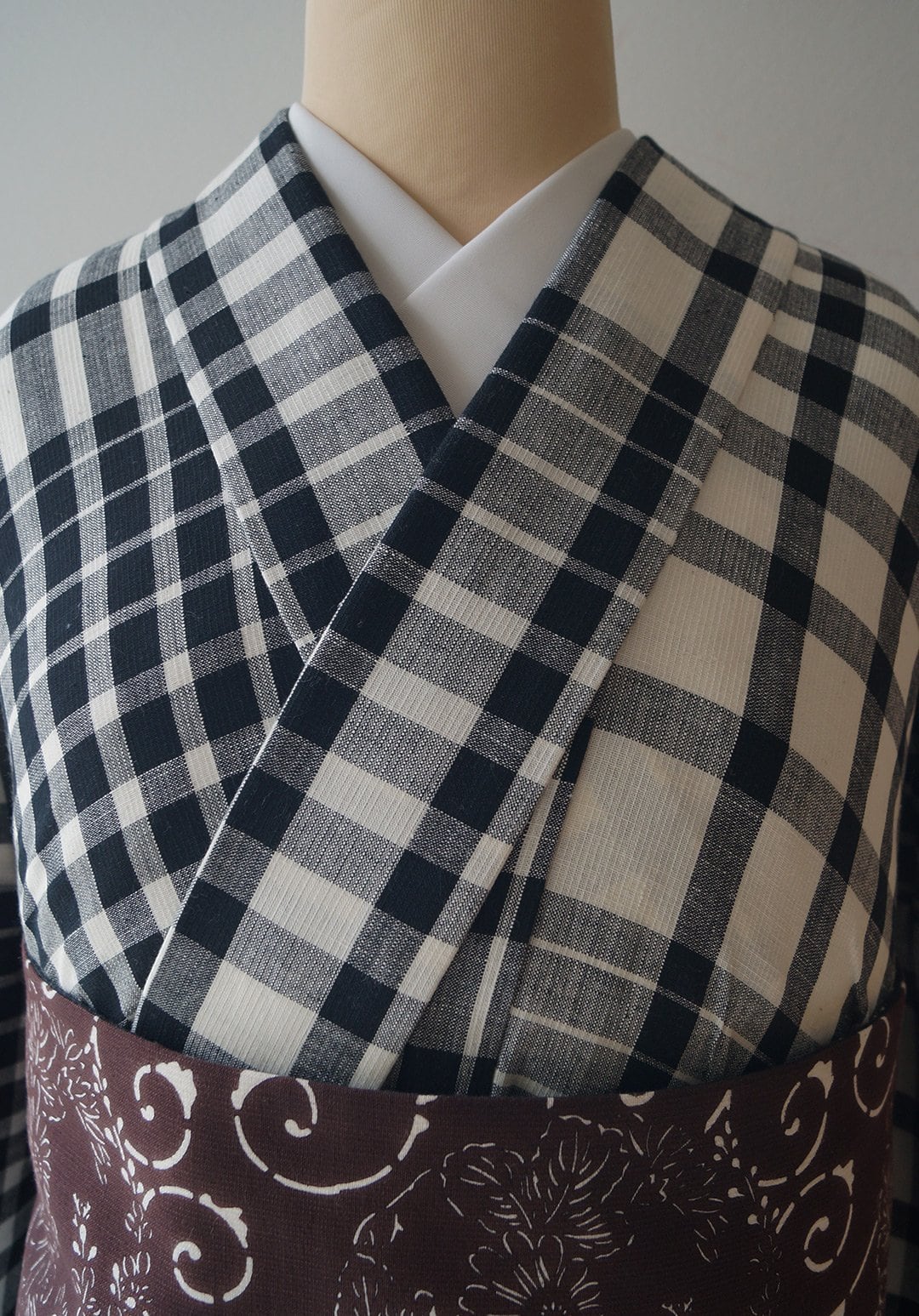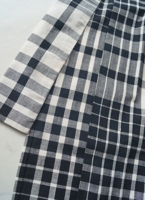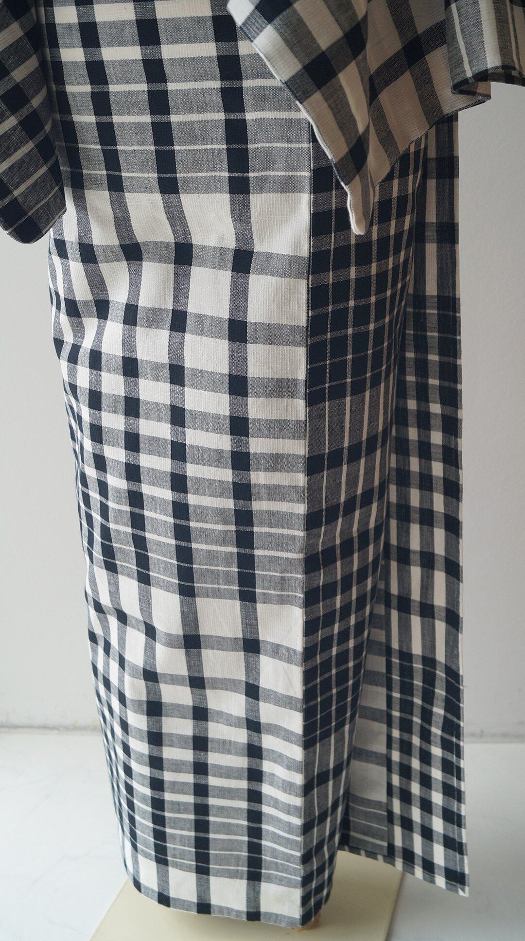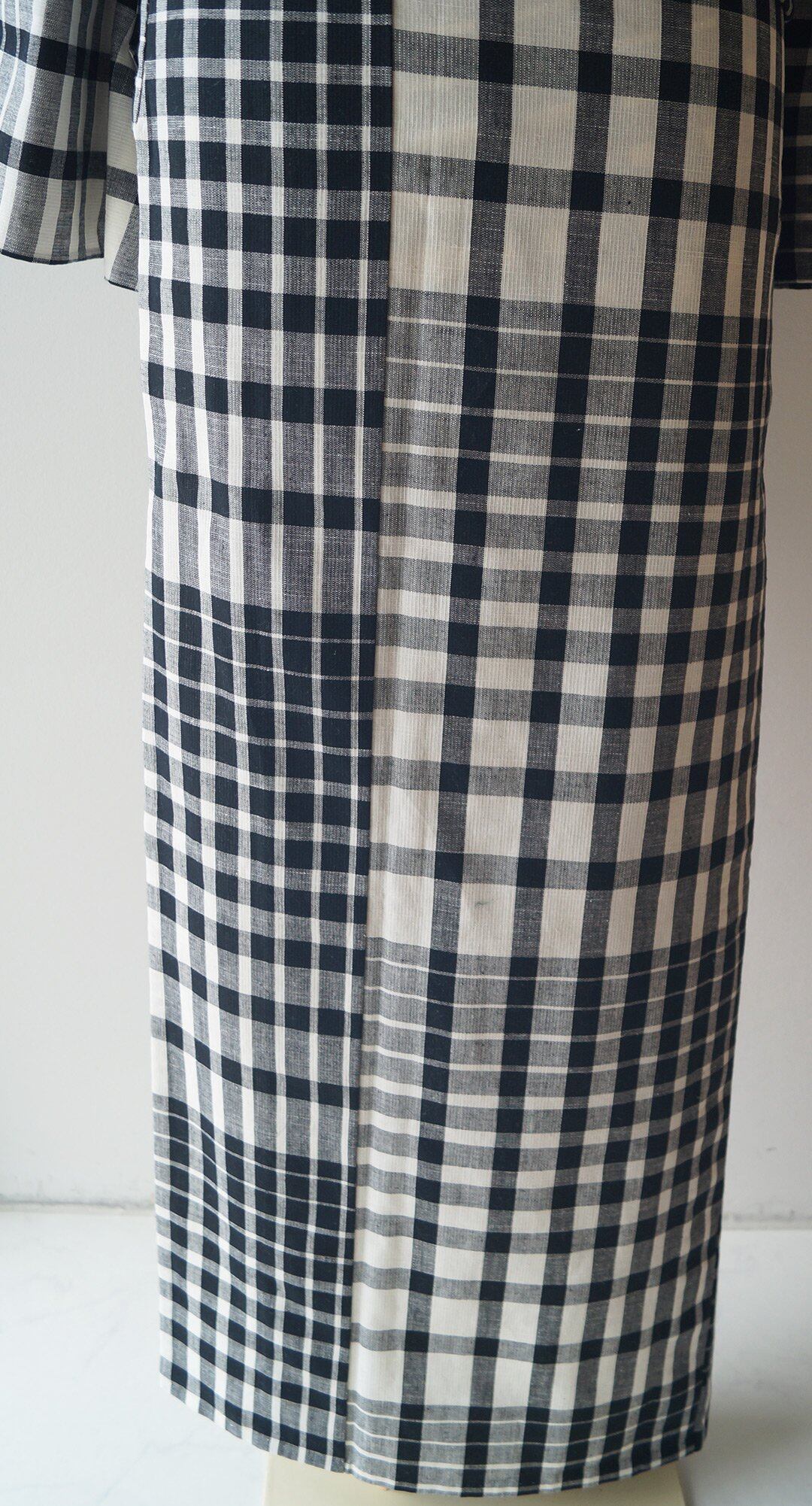 【単衣】紺仁工房 片貝木綿 モノトーン系ランダム格子 仕立上がり品
