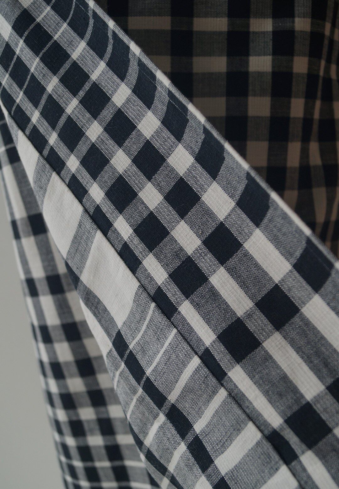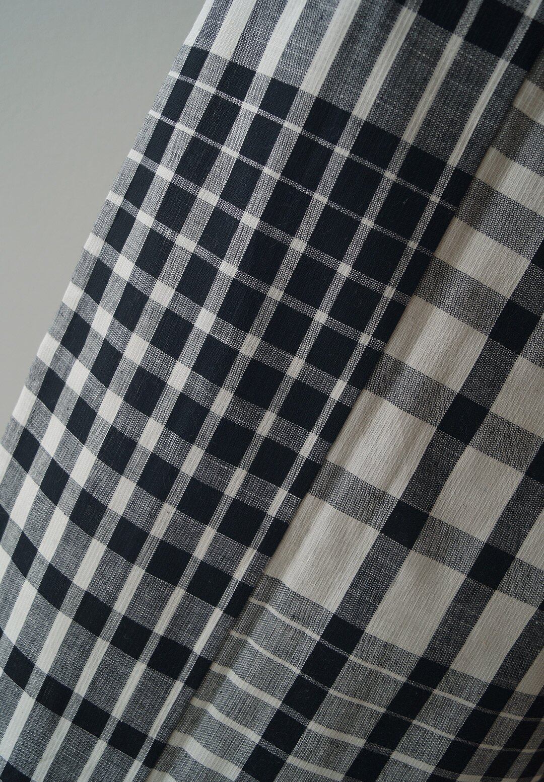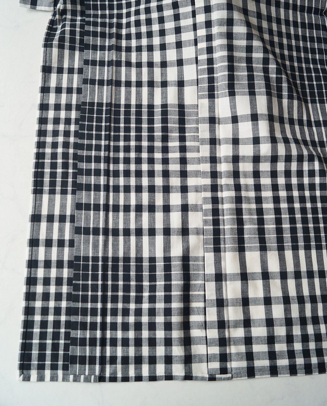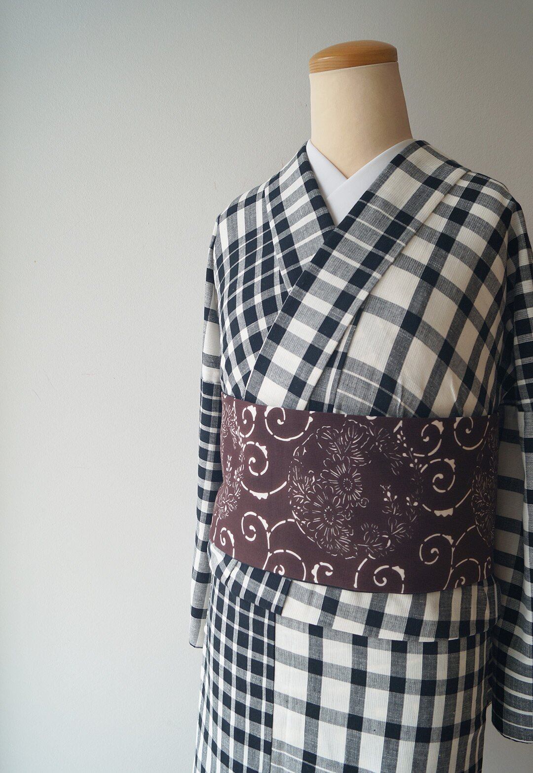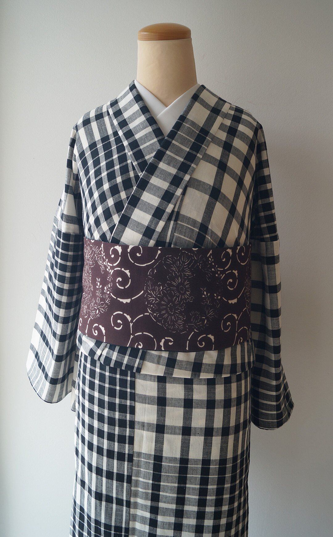 【単衣】紺仁工房 片貝木綿 モノトーン系ランダム格子 仕立上がり品