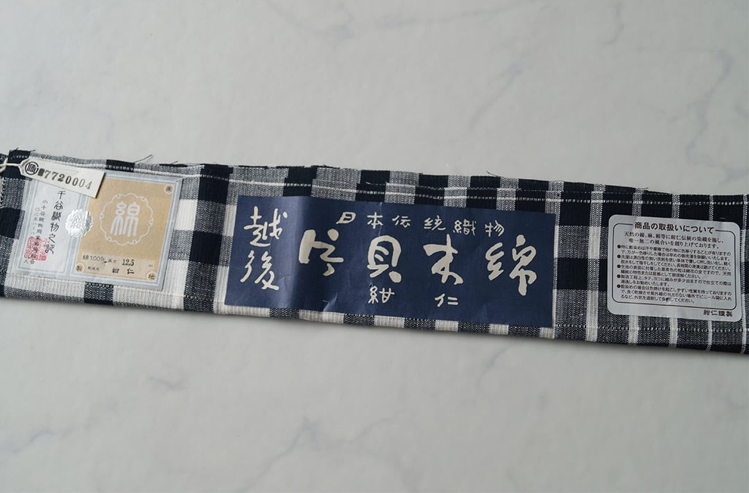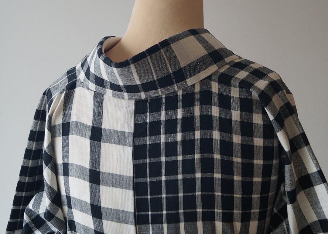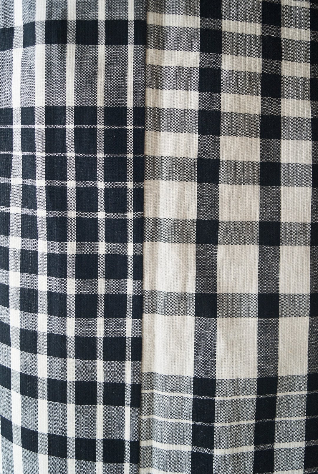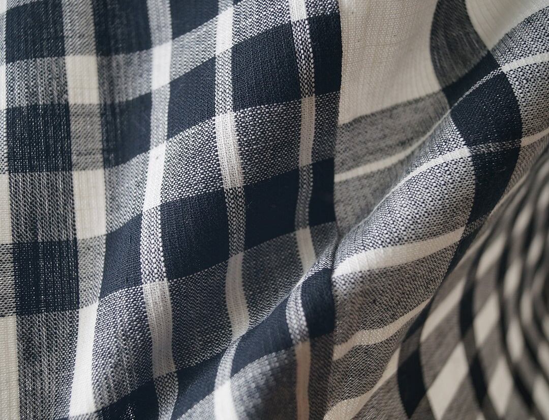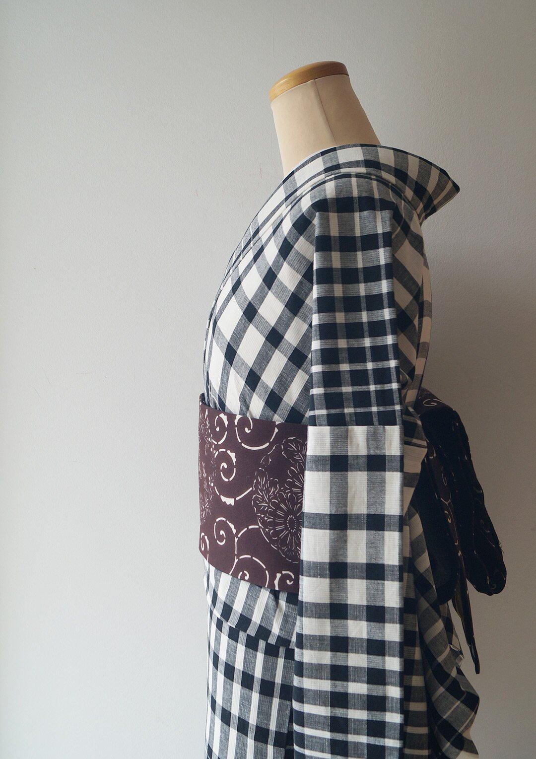 【単衣】紺仁工房 片貝木綿 モノトーン系ランダム格子 仕立上がり品