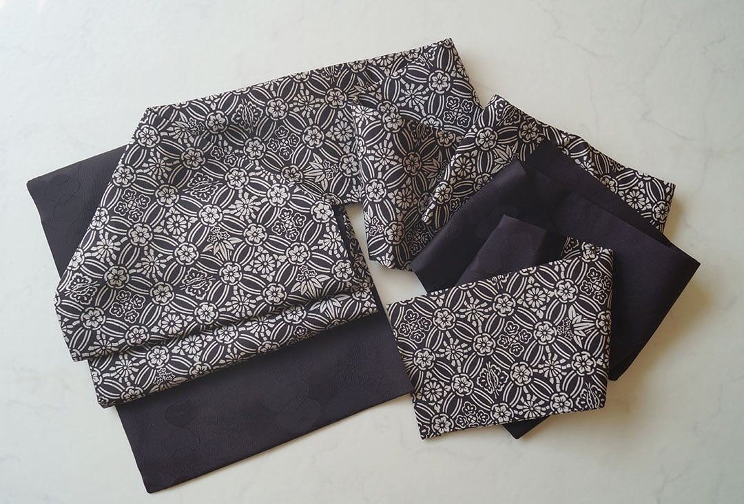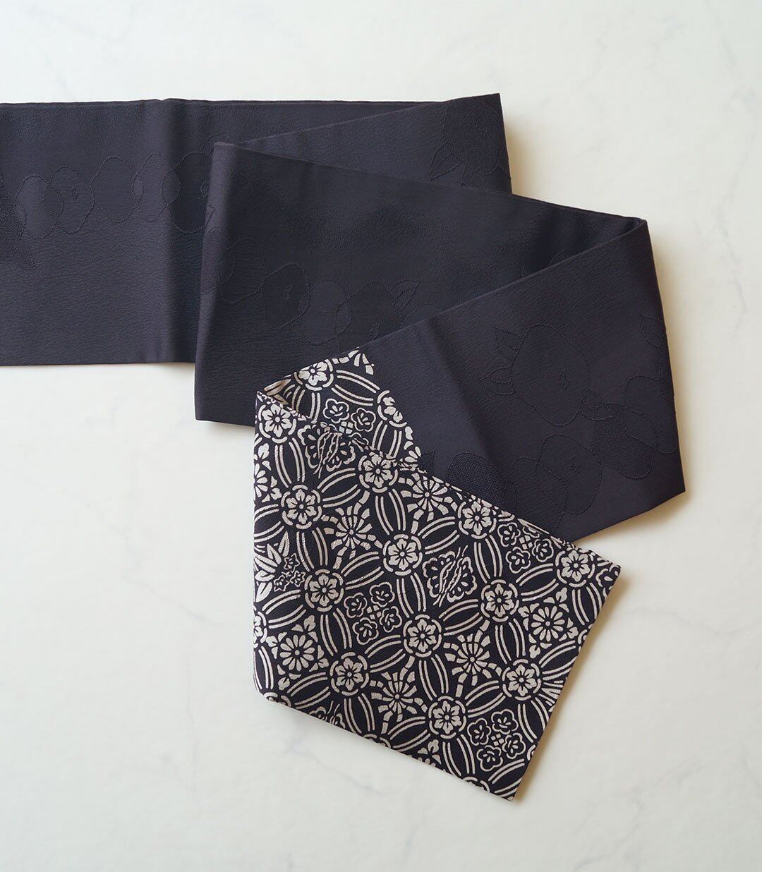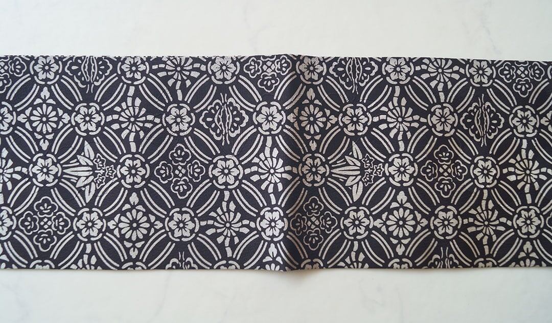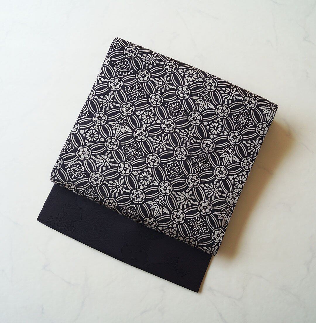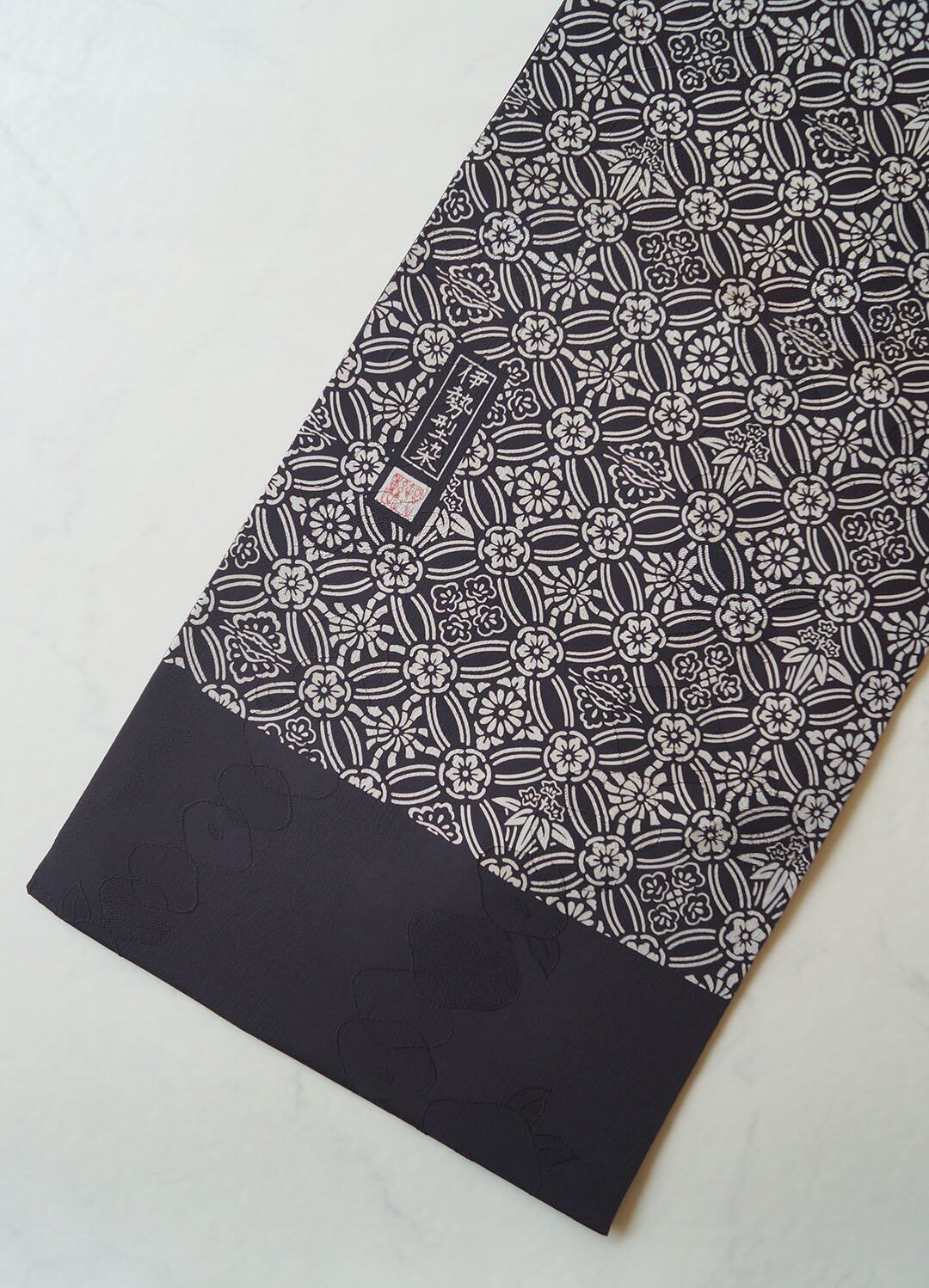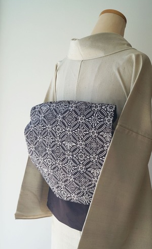 【なごや帯】伊勢型染 烏羽色地 七宝繋ぎ文 なごや帯