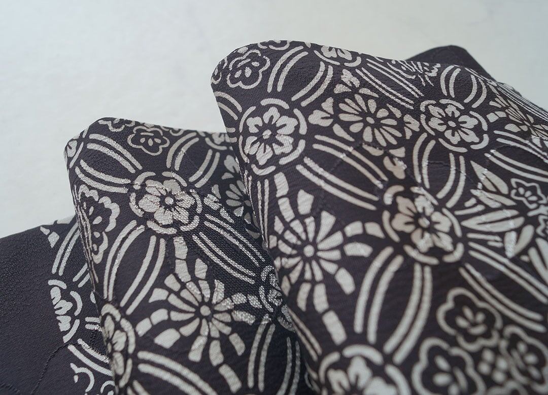 灰味の中に紫を感じる白梅鼠色で型染めされた