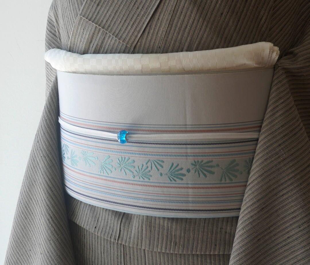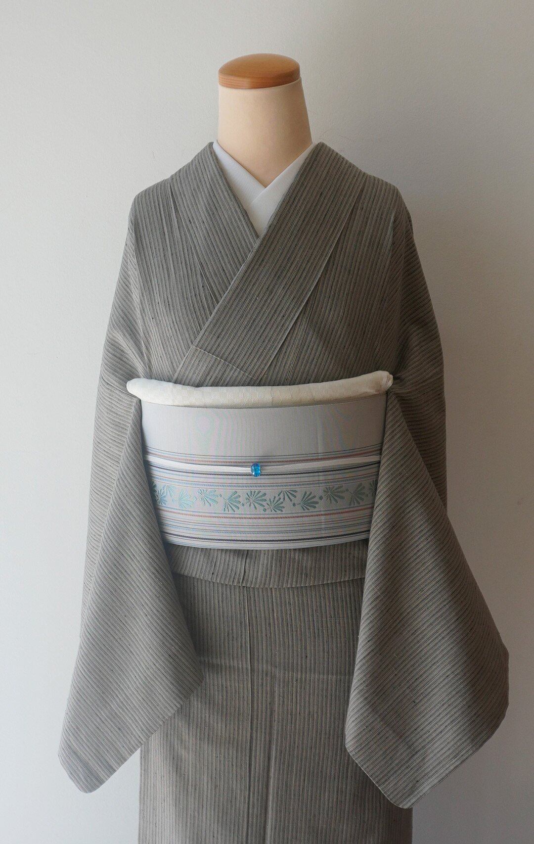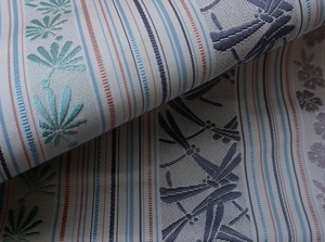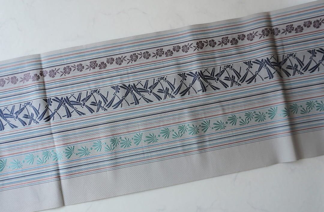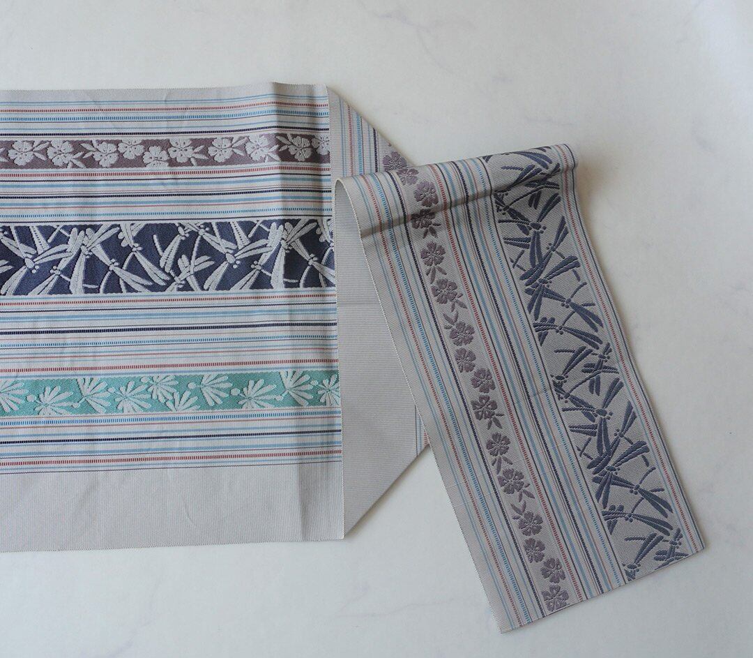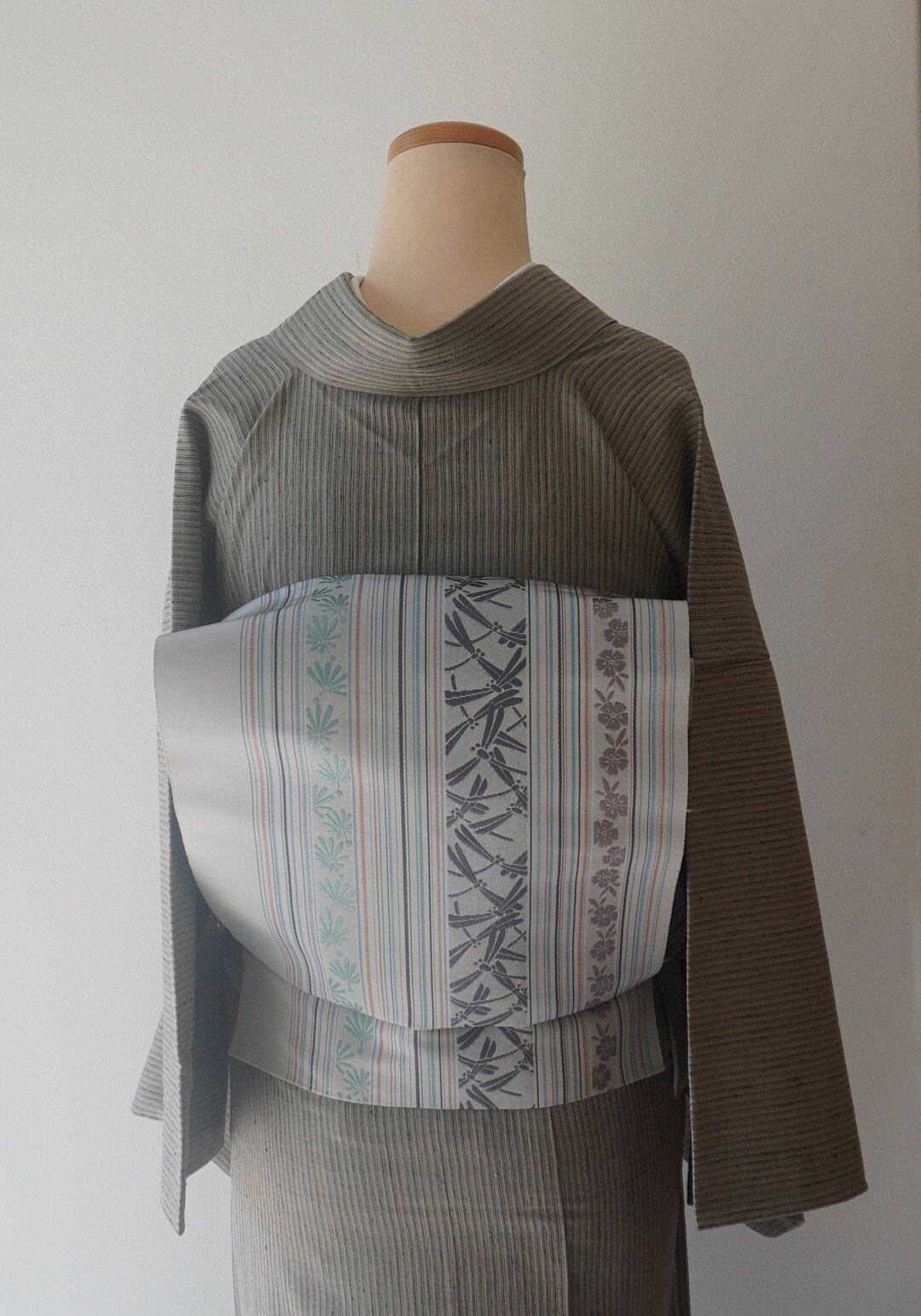【なごや帯】灰地 蜻蛉×植物文 博多八寸なごや帯