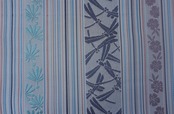 淡いグレーの地に、灰味がかった水色、橙、墨色