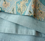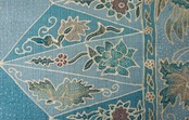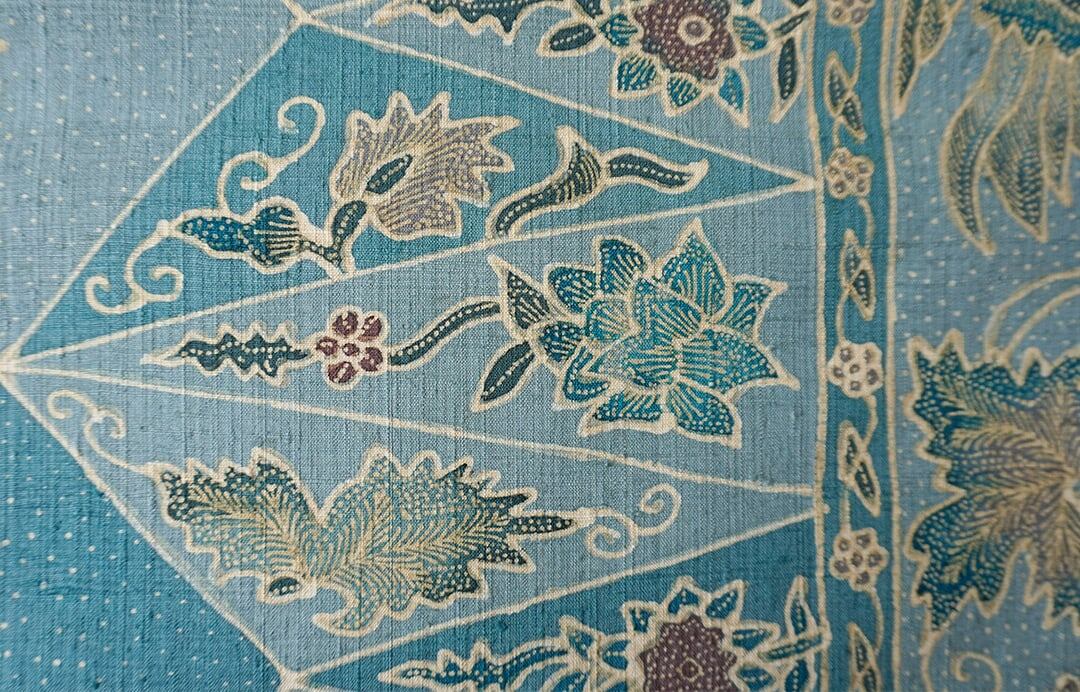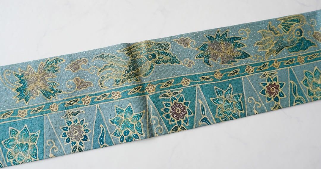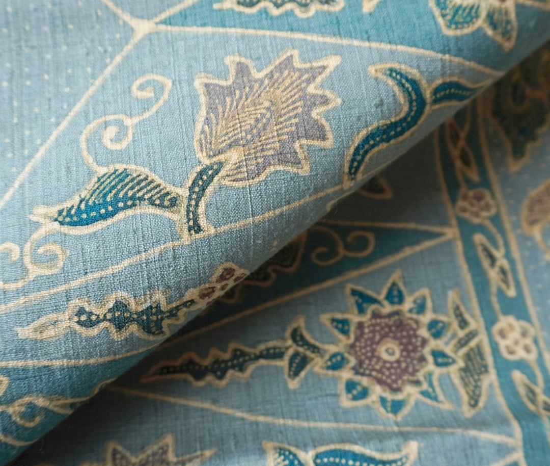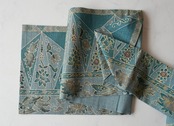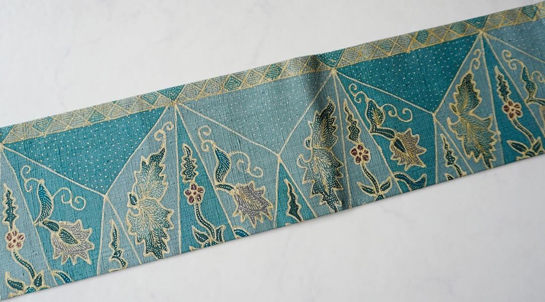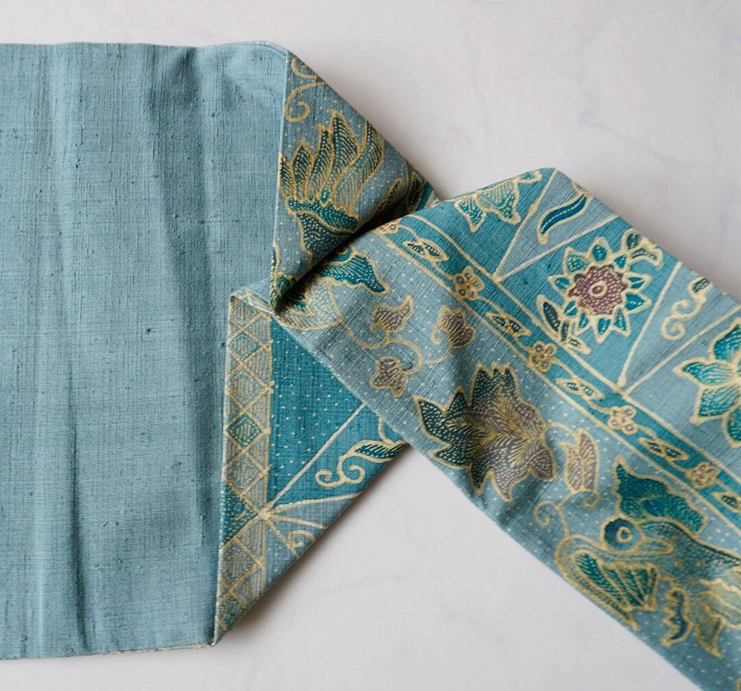 【なごや帯】浅縹地 抽象植物文 紬地なごや帯