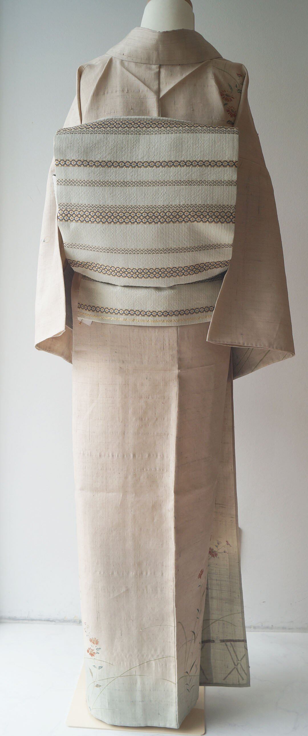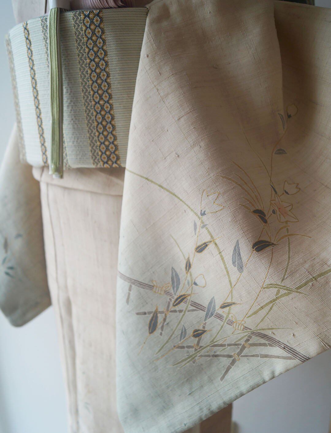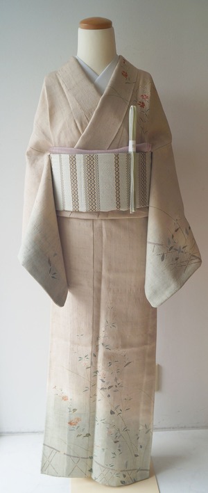 【単衣】 砂色 秋草文 紬訪問着
