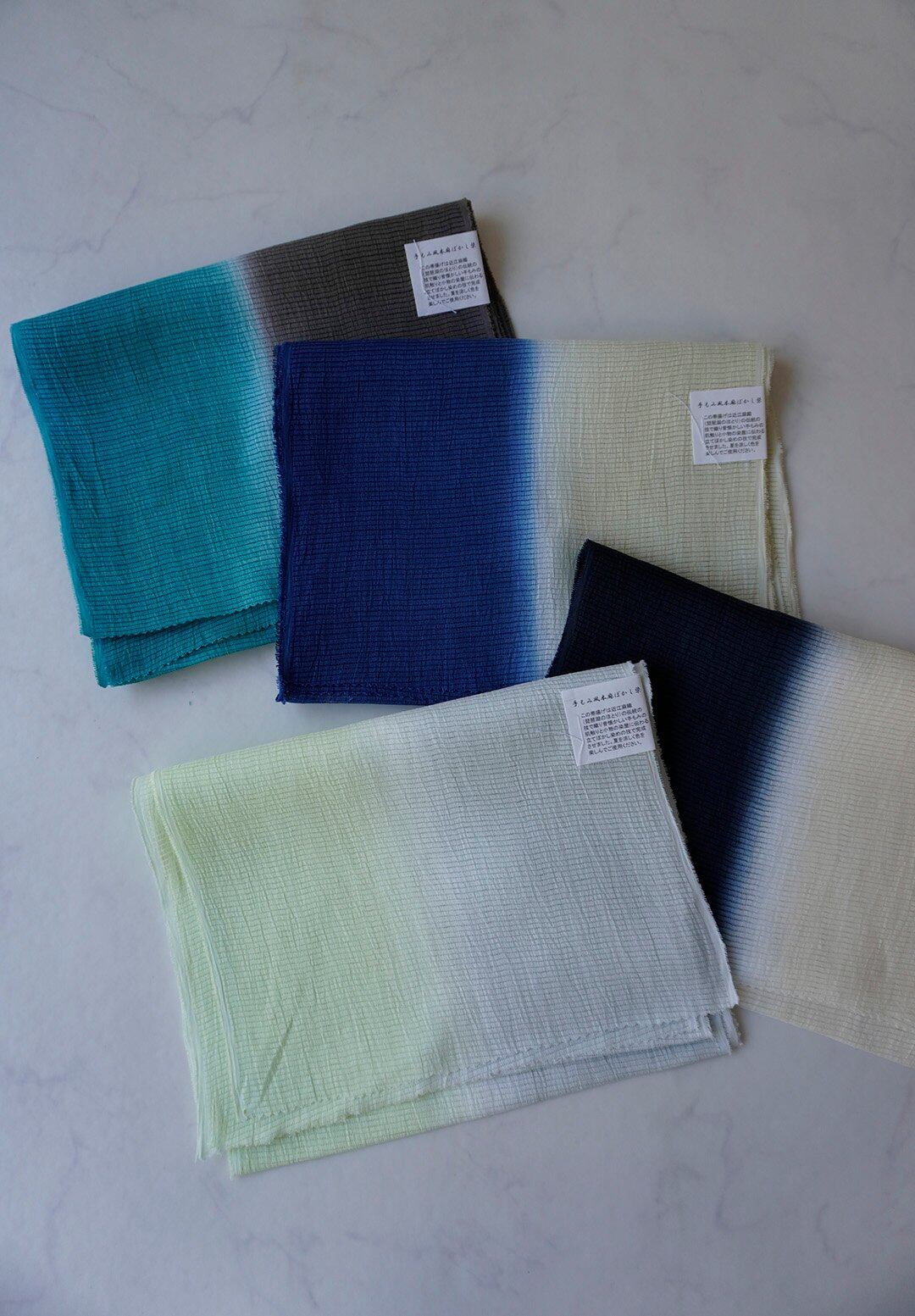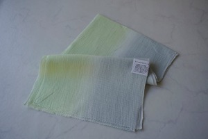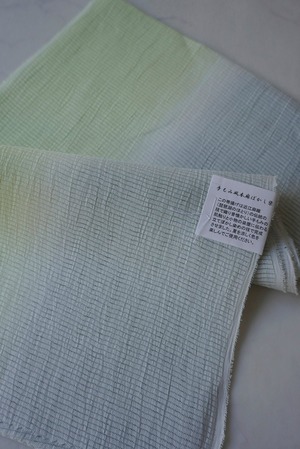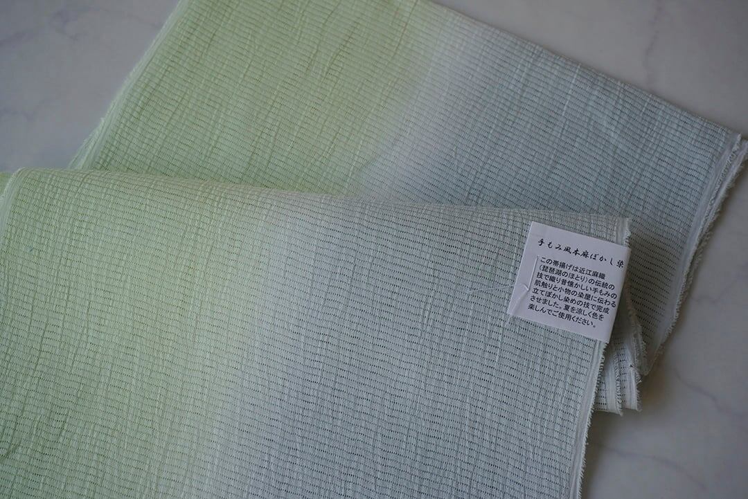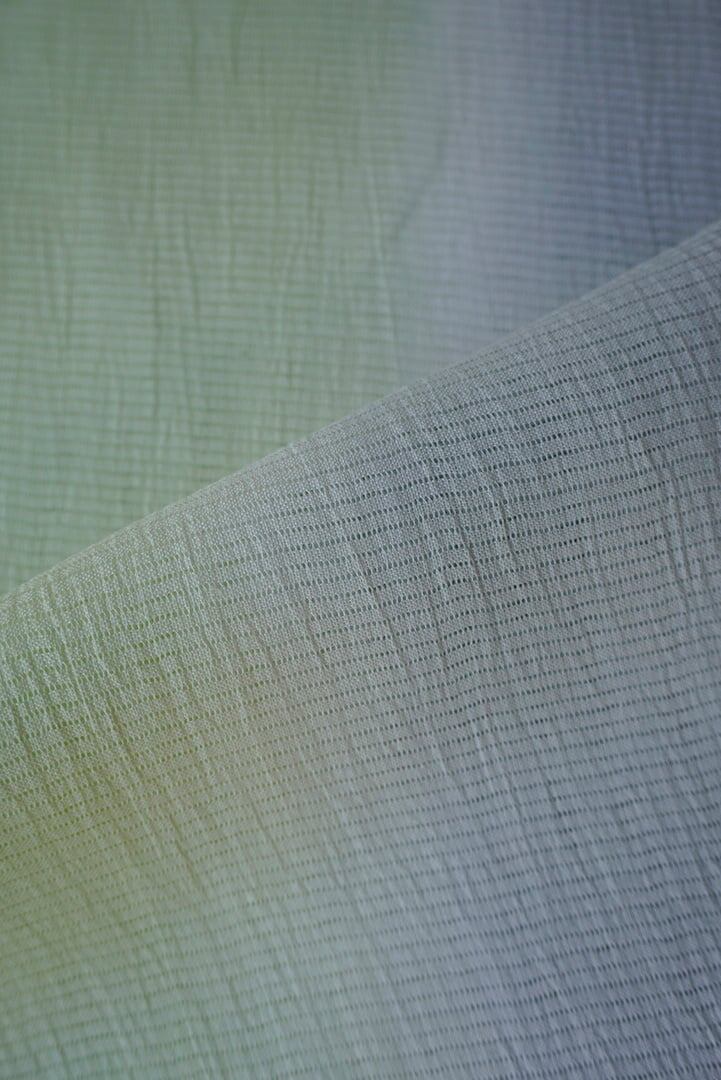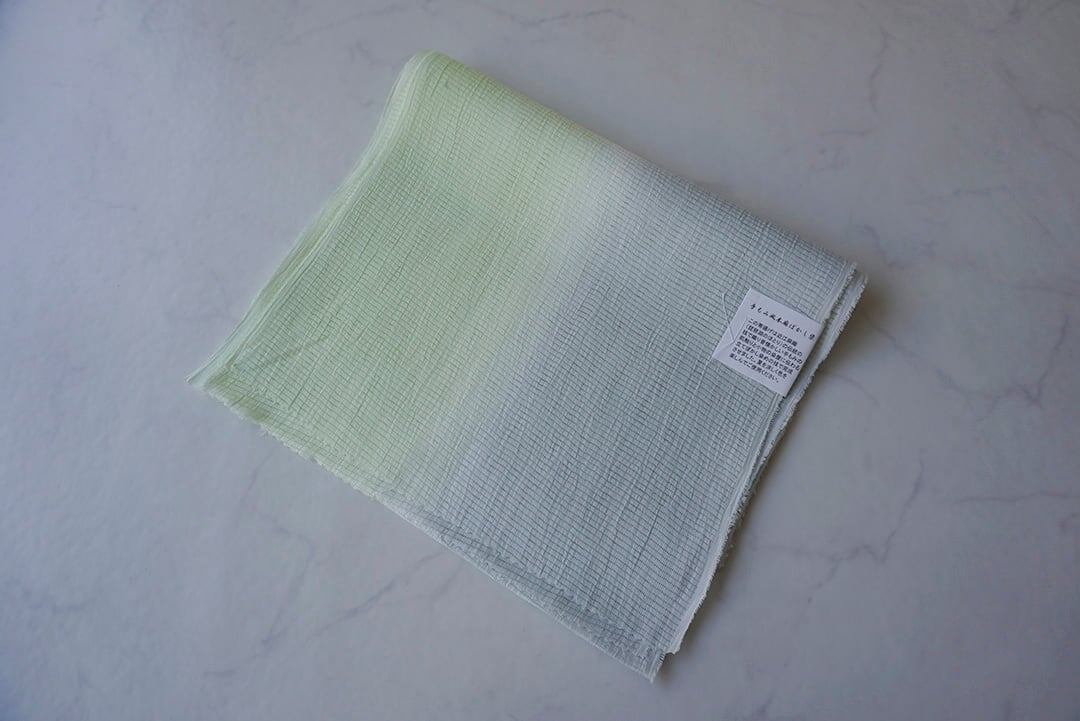 【帯揚げ】若芽色✕灰青 無地 手もみ風 二色暈かし 絽本麻帯揚げ No.250728①