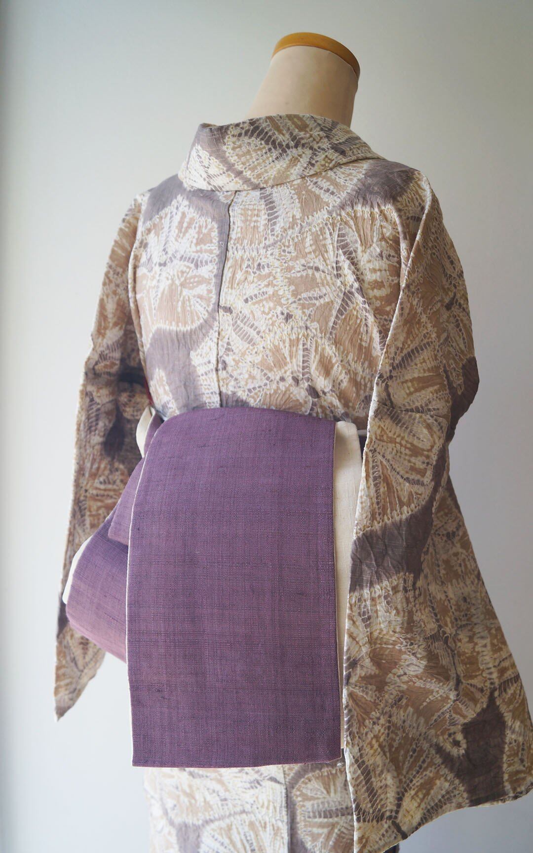 帯の結び方によって、裏面の生成り色が