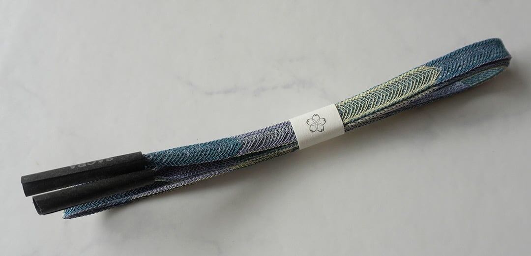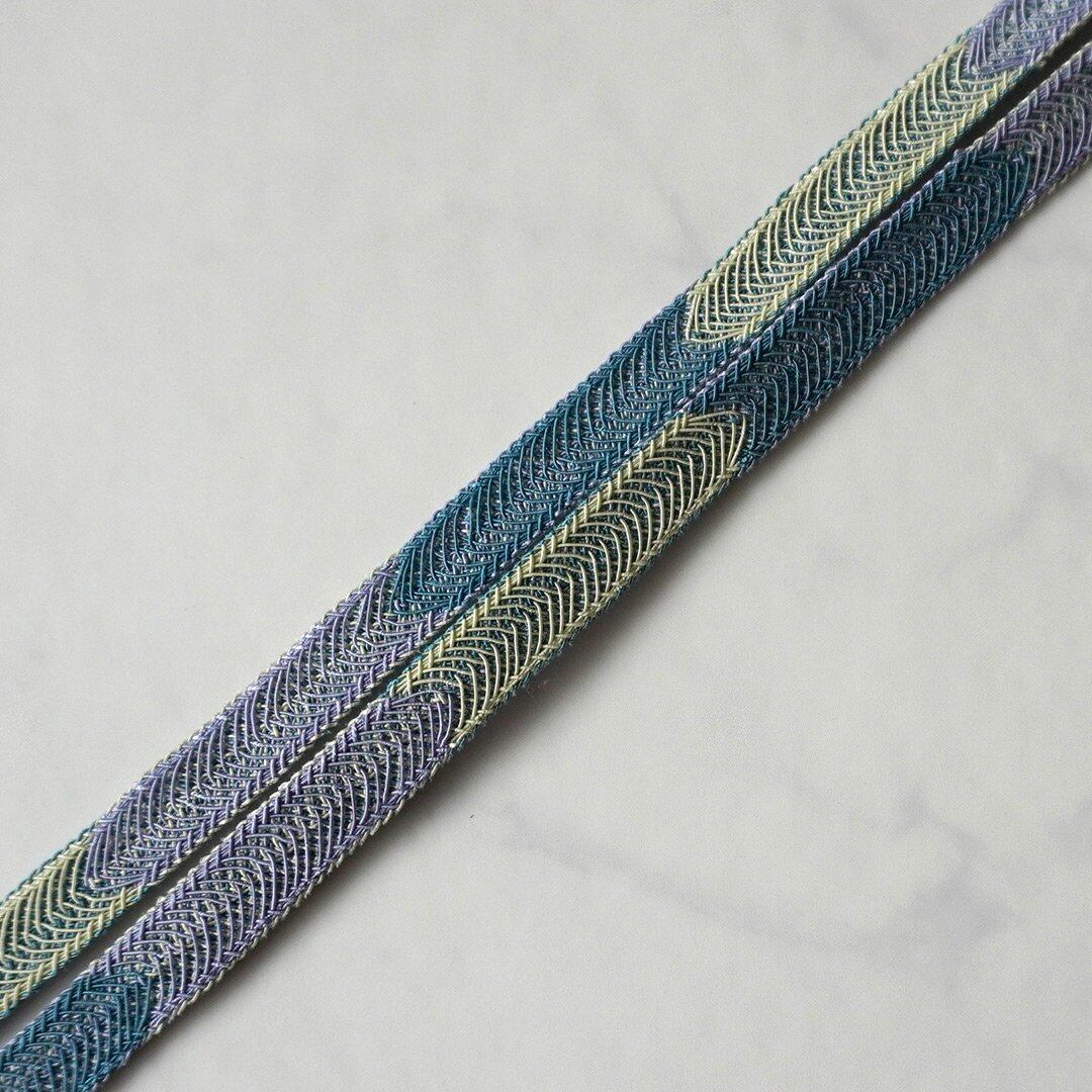 【和小物さくら・帯締め】淡黄色×紫×藍色 矢羽根段切替レース 夏用帯締め No.250624⑳