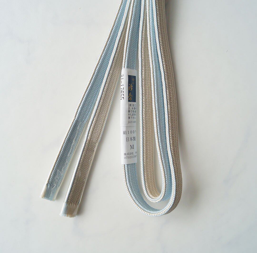 【帯締め】京都衿秀 四分紐 リバーシブル帯締め 鳥の子色×白藍色 250325⑧