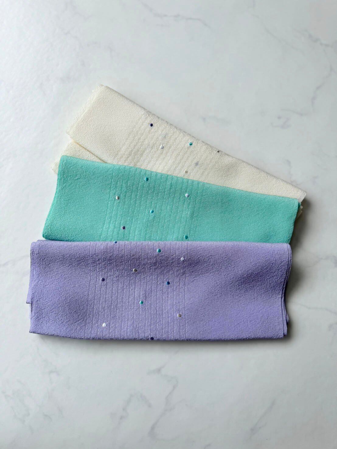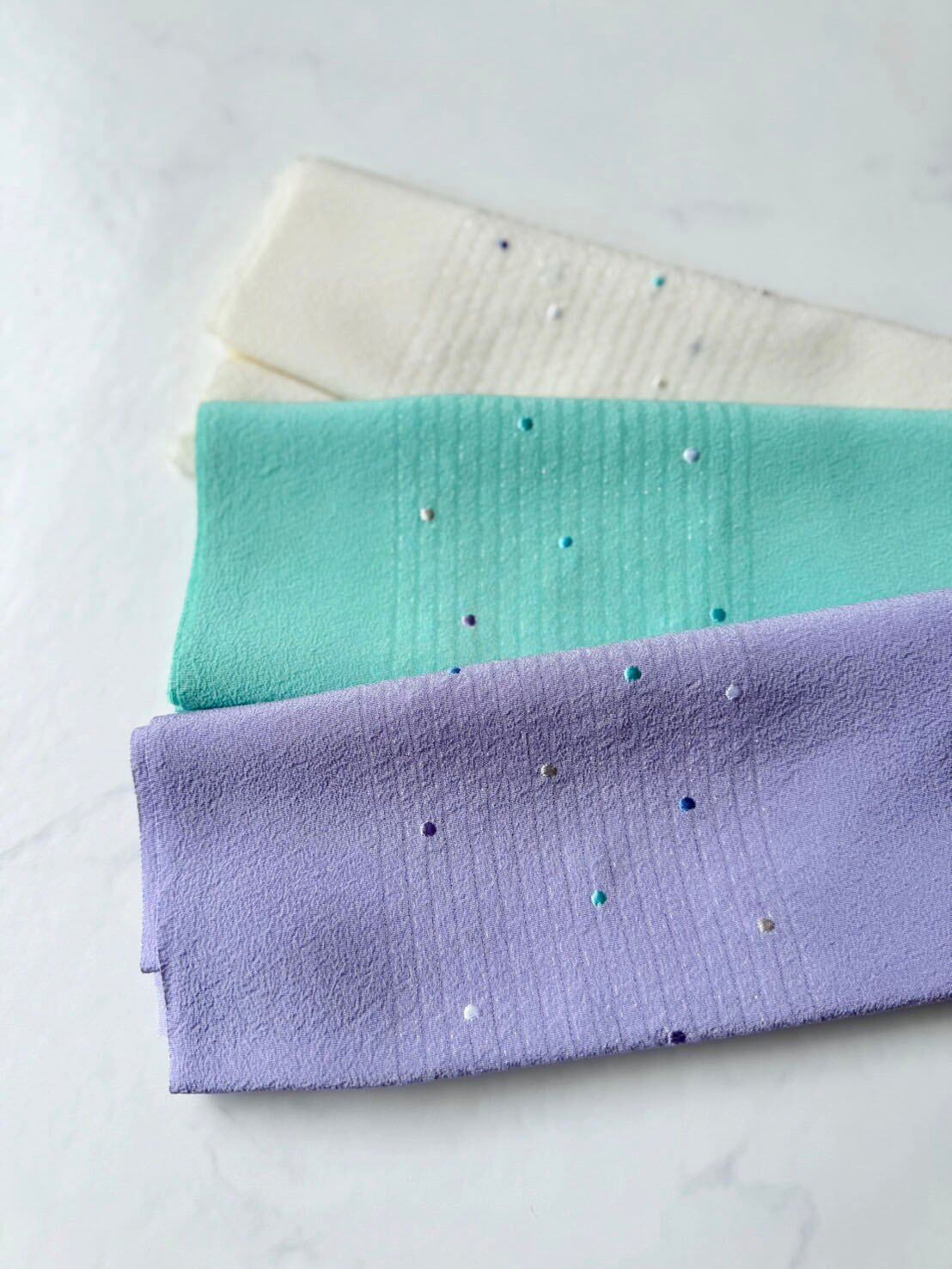 【帯揚げ】ドット刺繍 部分縦絽 半色帯揚げ 250403⑦
