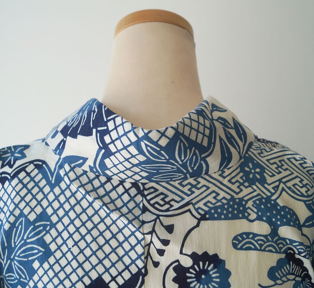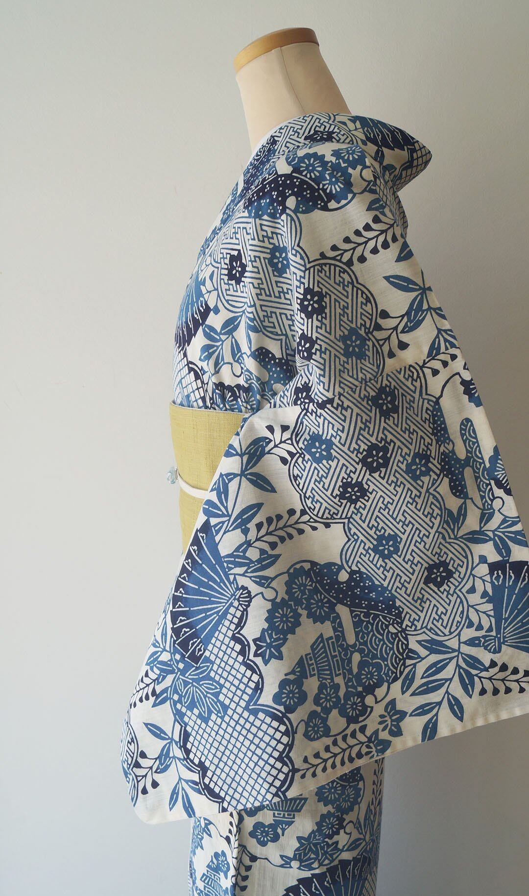 【浴衣】藍色系×生成色 古典文様 浴衣