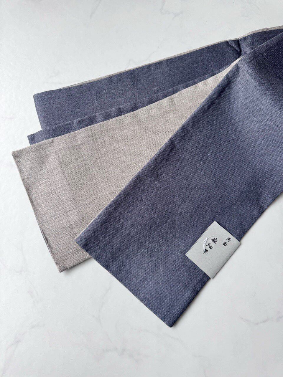 三勝さんの両面麻の半幅帯です。
