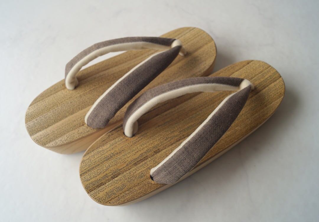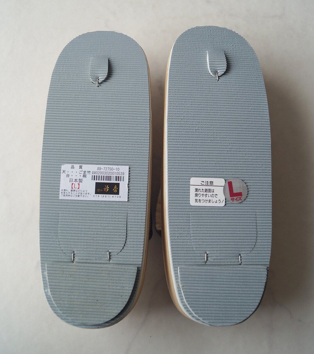 【下駄】胡麻竹 舟形台 別注 手紡ぎ煤色地花緒 L寸 NO.240612③