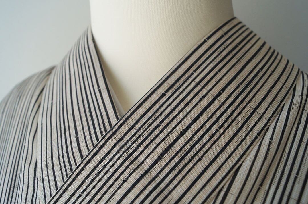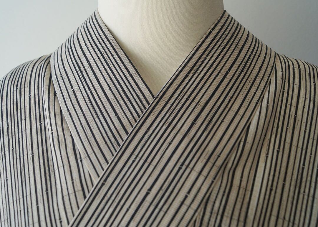 【浴衣】象牙色×蝋色 細竹柄縞文 浴衣_1