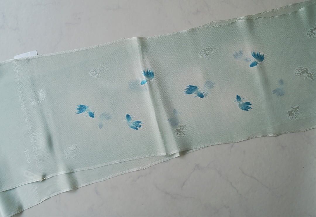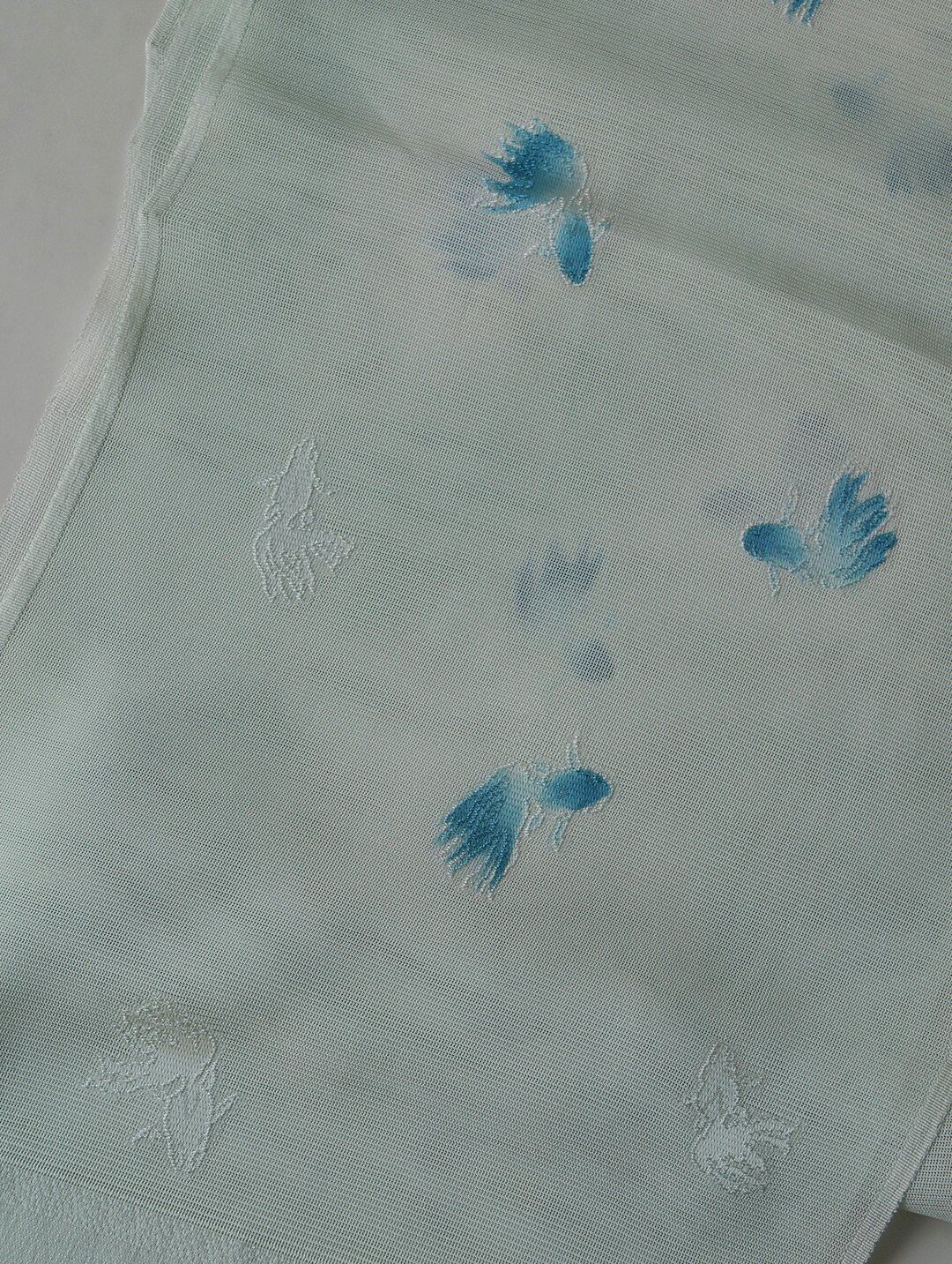 【帯揚げ】丹後紋紗織 金魚 手染めぼかし 千草鼠色×浅葱色 紗帯揚げ
