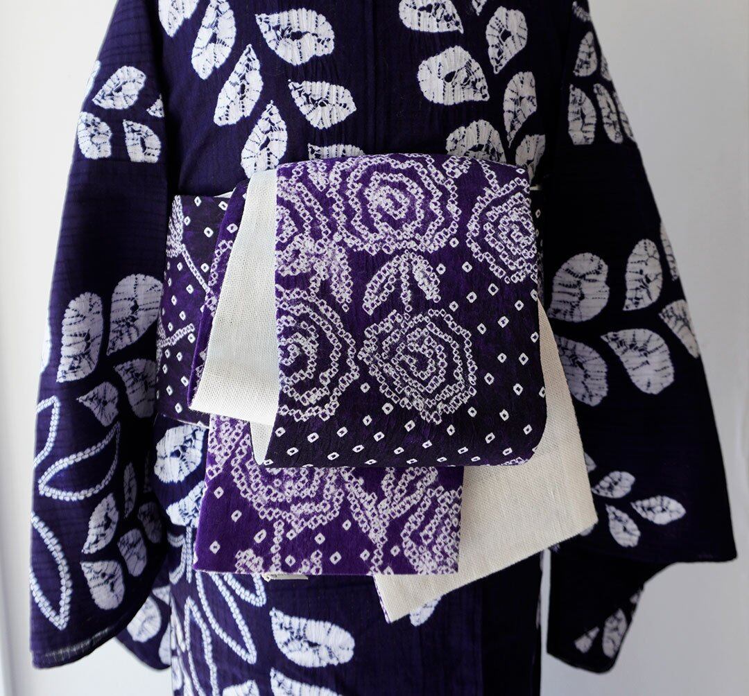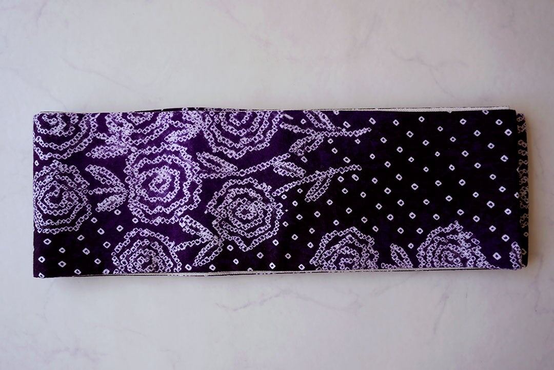 花文、手絞り半幅帯です。