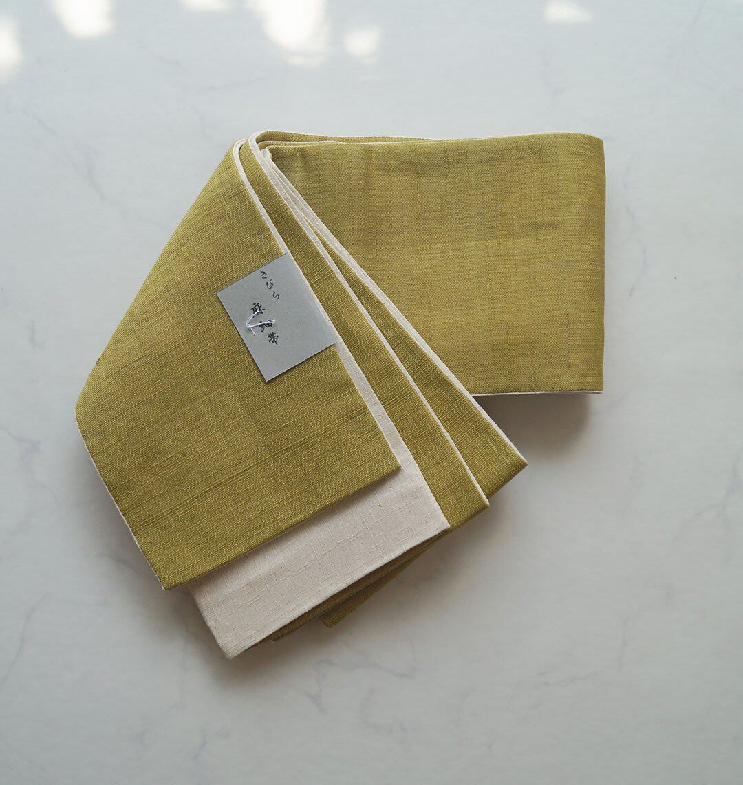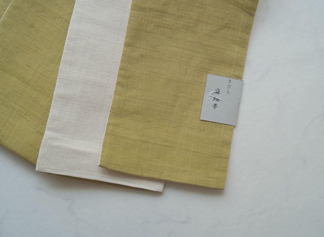 【三勝・半幅帯】芥子色 × 生成り色 麻きびら 半幅帯 250722④