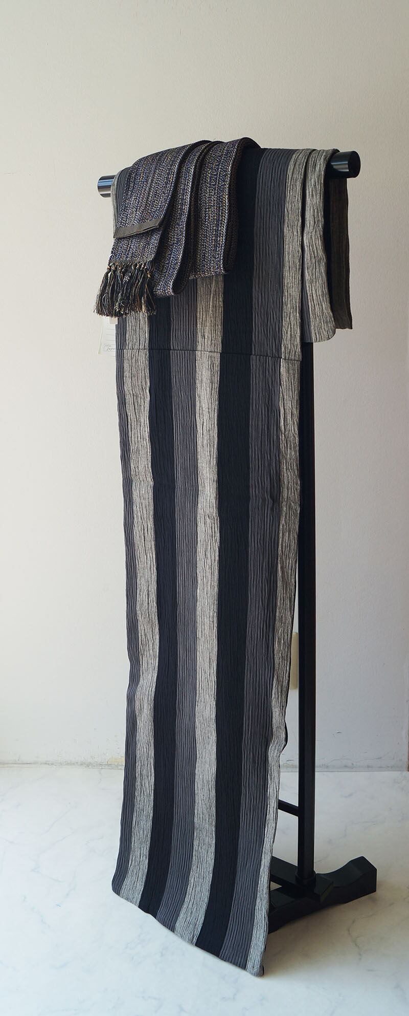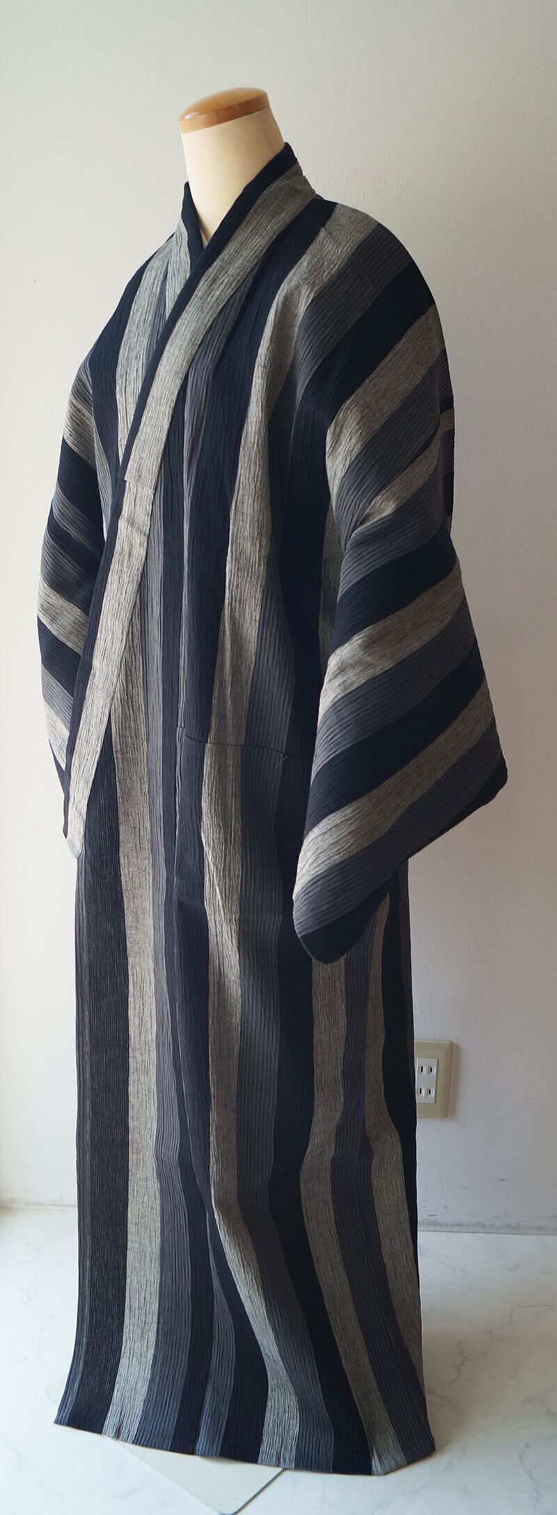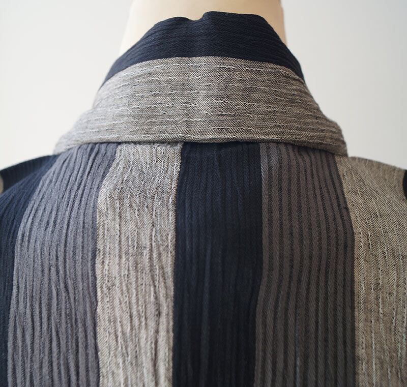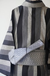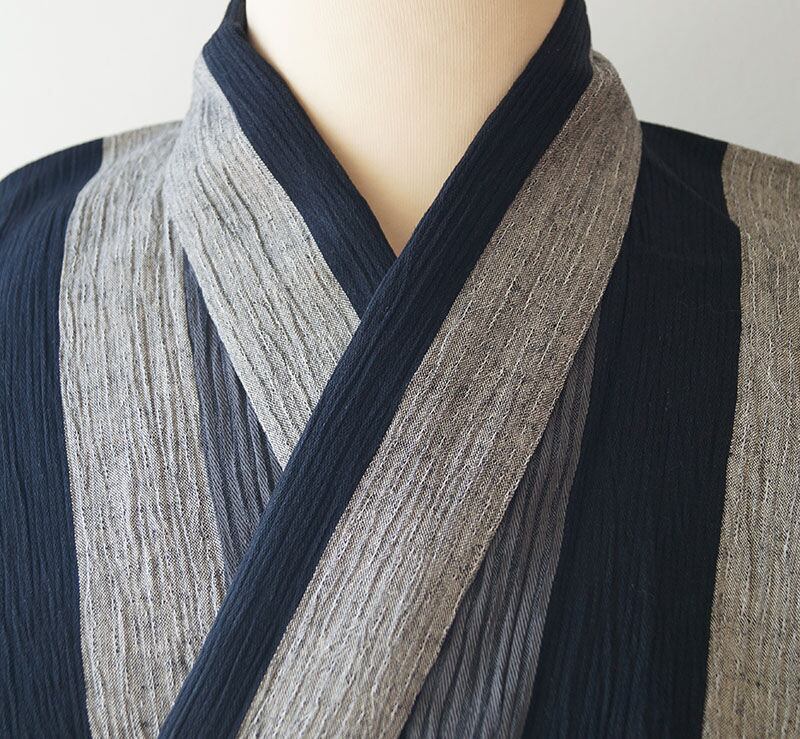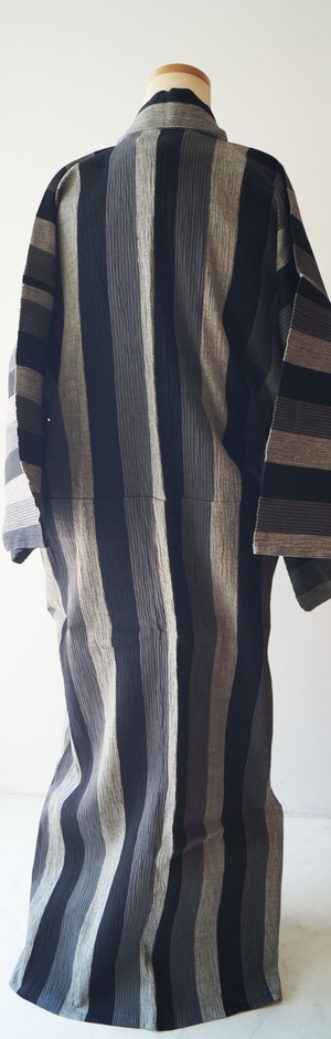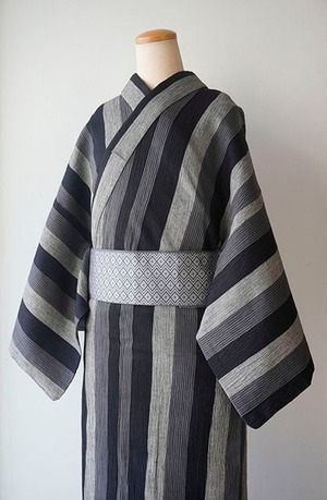 【men's浴衣】縮地 三色縞文 仕立て上がり 綿麻浴衣