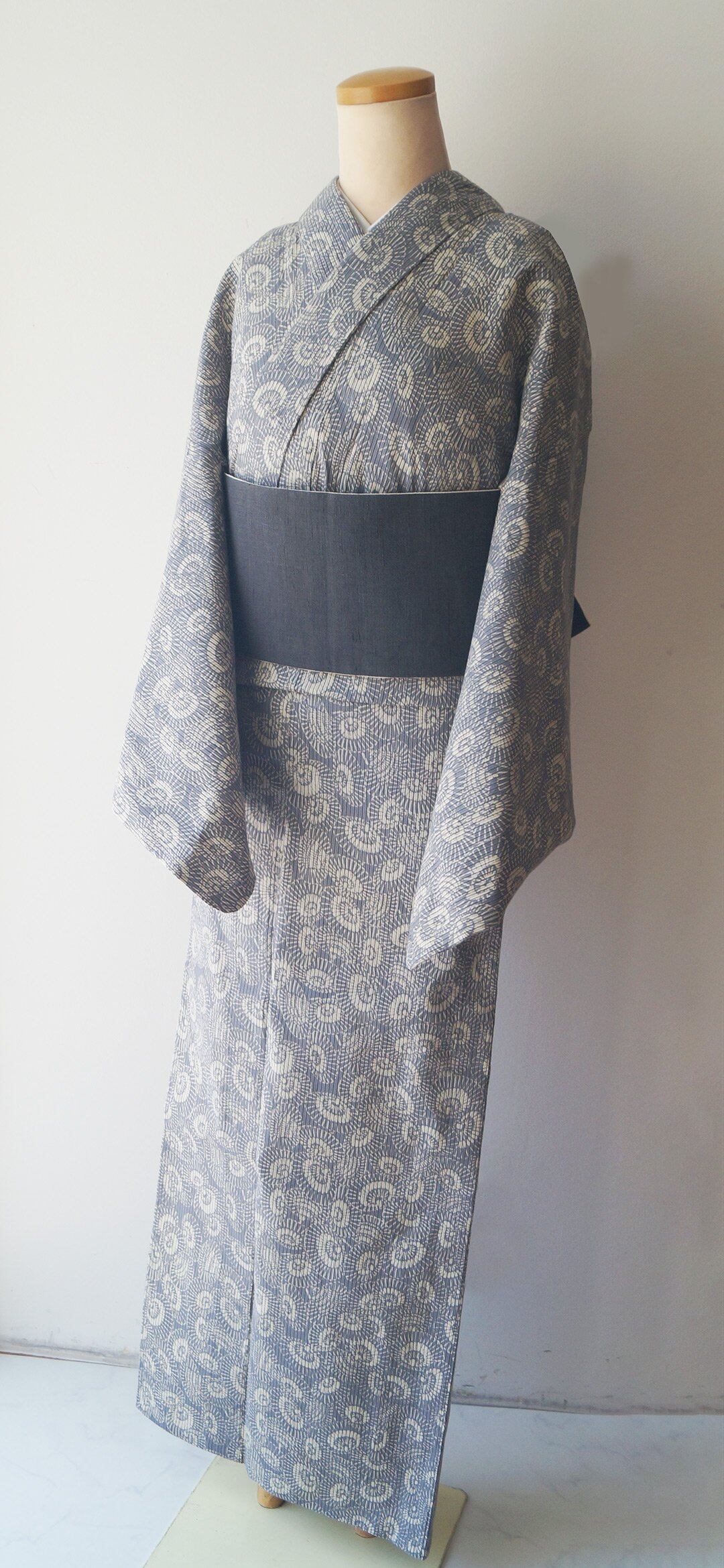 【浴衣】薄鼠色×生成色 番傘文様 浴衣 2025