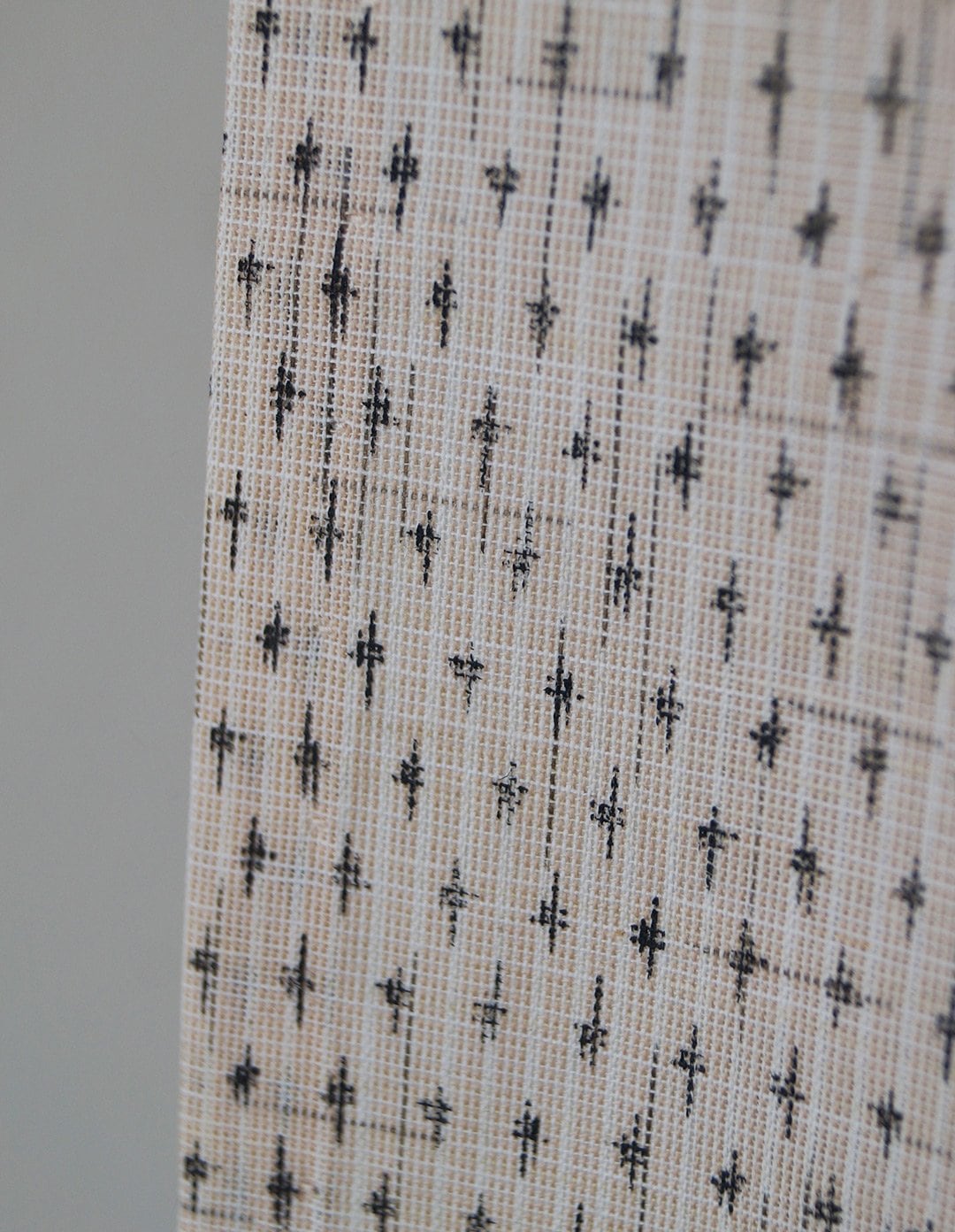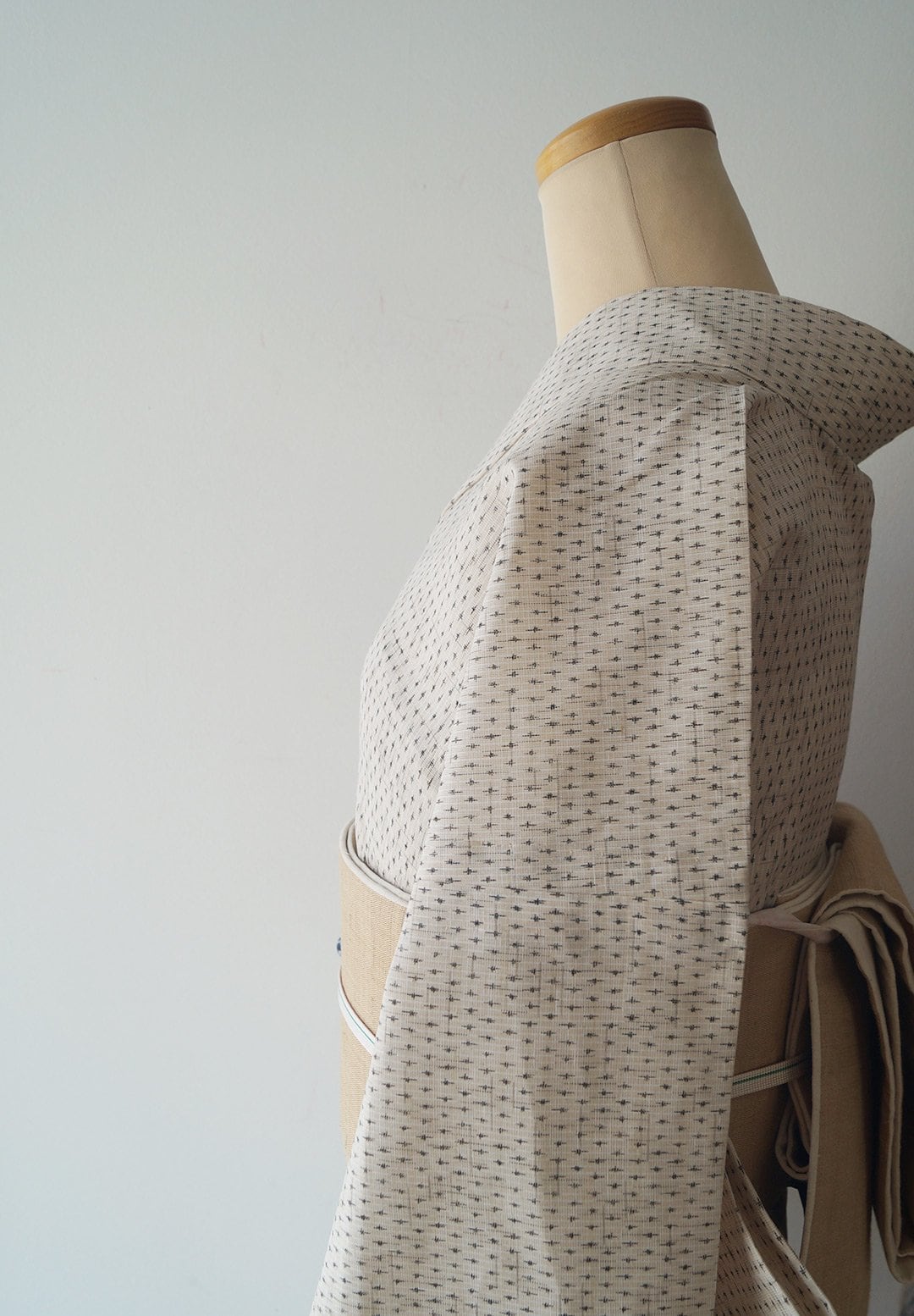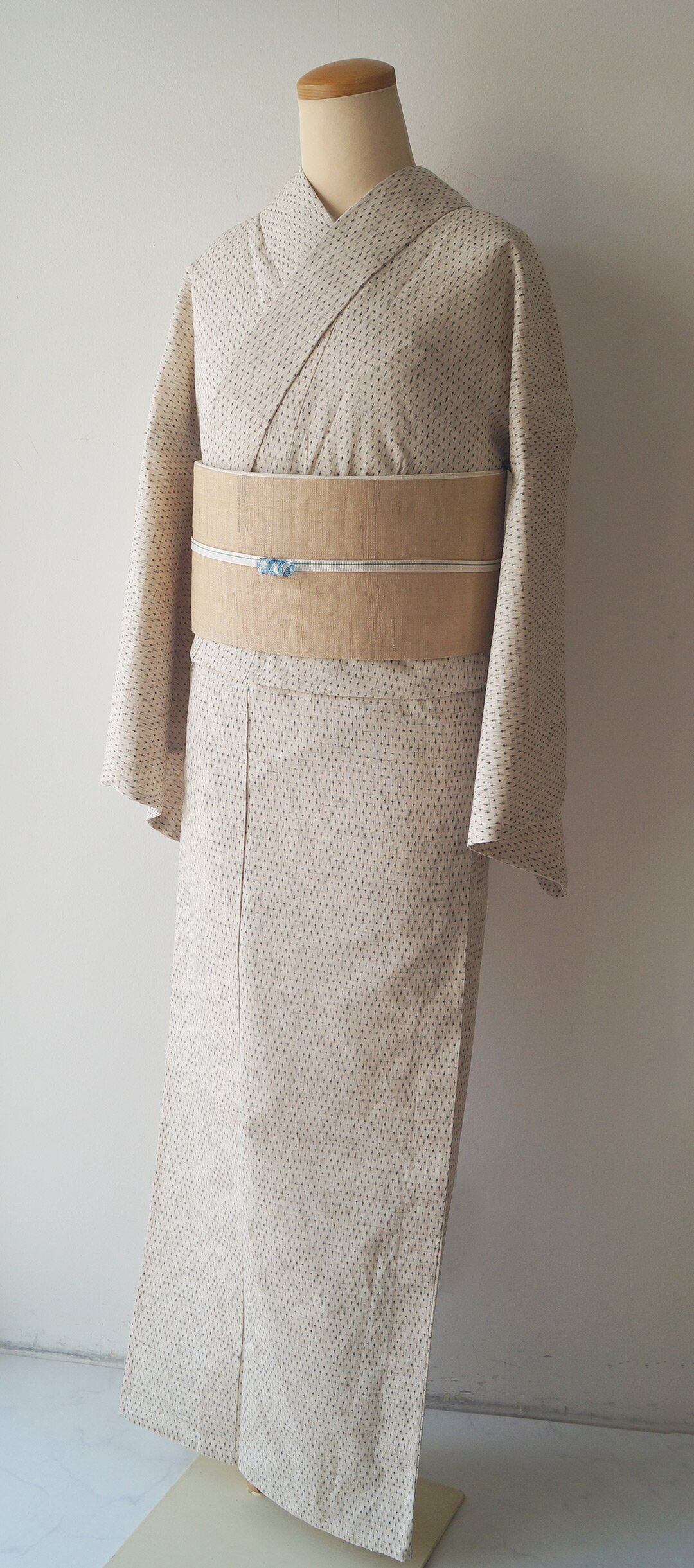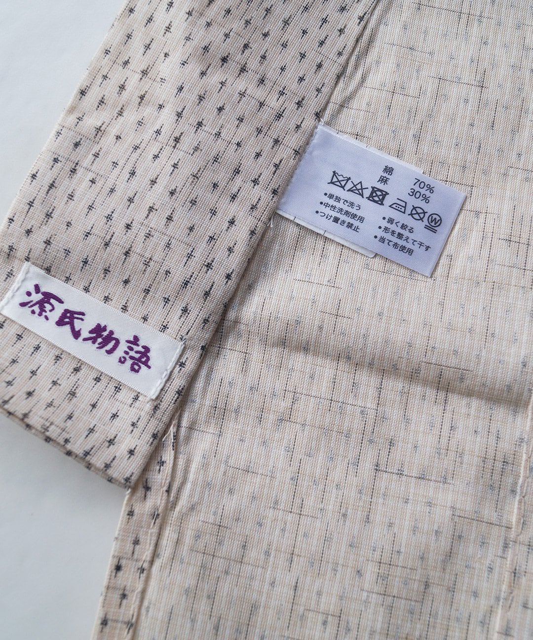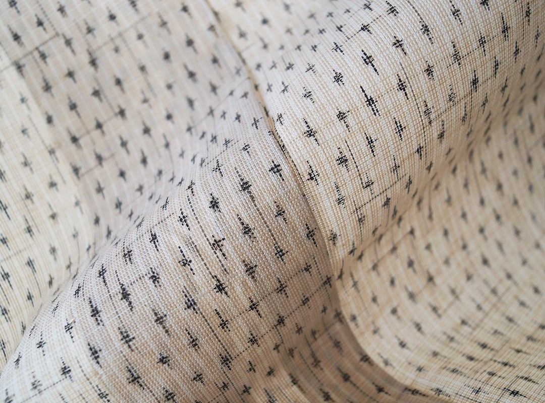 地色はナチュラルトーンで薄い亜麻色と白、