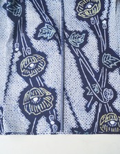 大胆な文様、藍と白のシンプルな色使いが