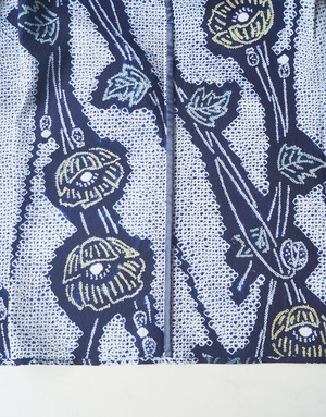 【浴衣】藍色地 花文 絞り 浴衣