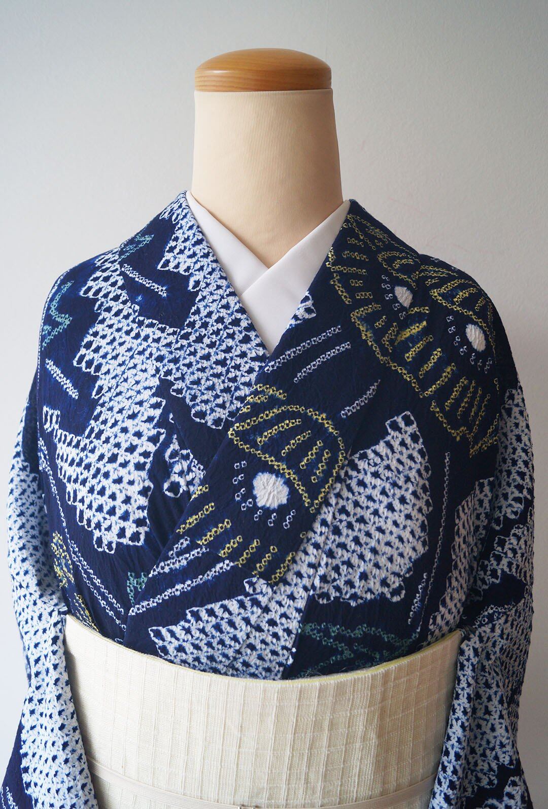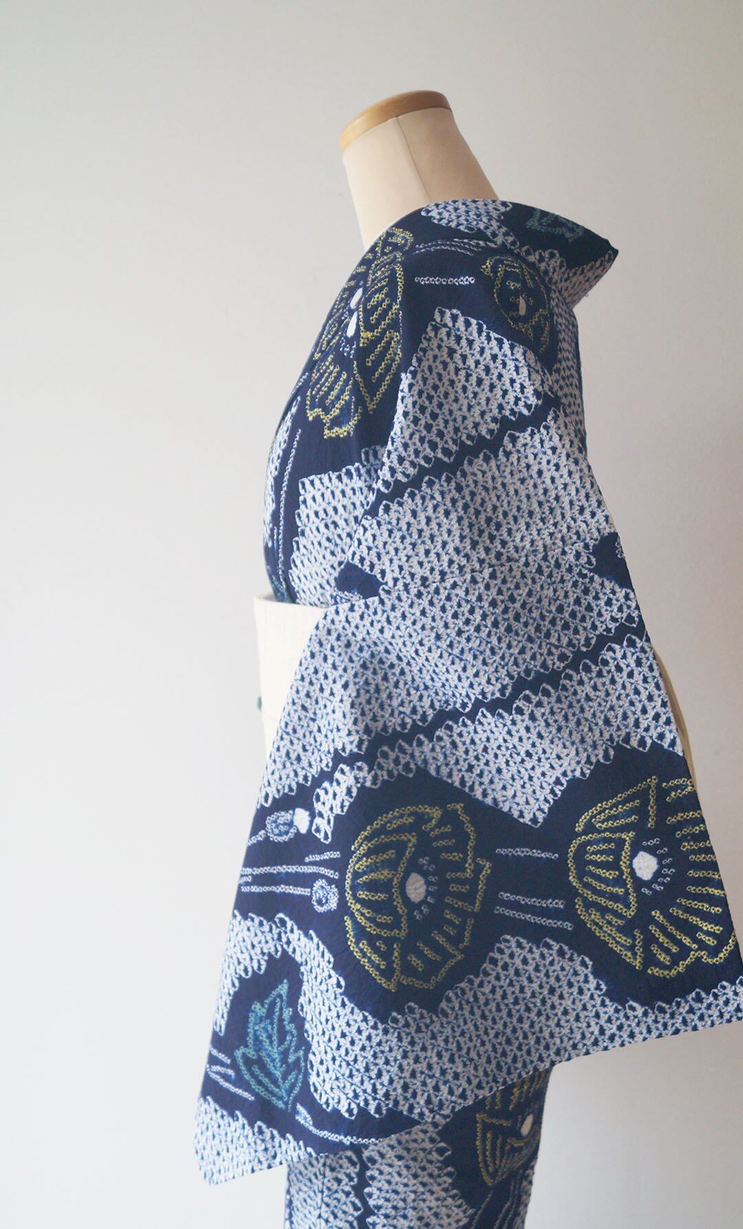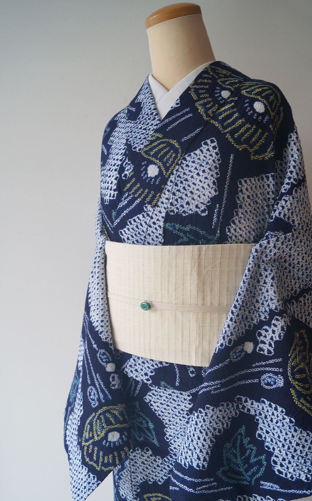 紺藍地の絞り浴衣です。
