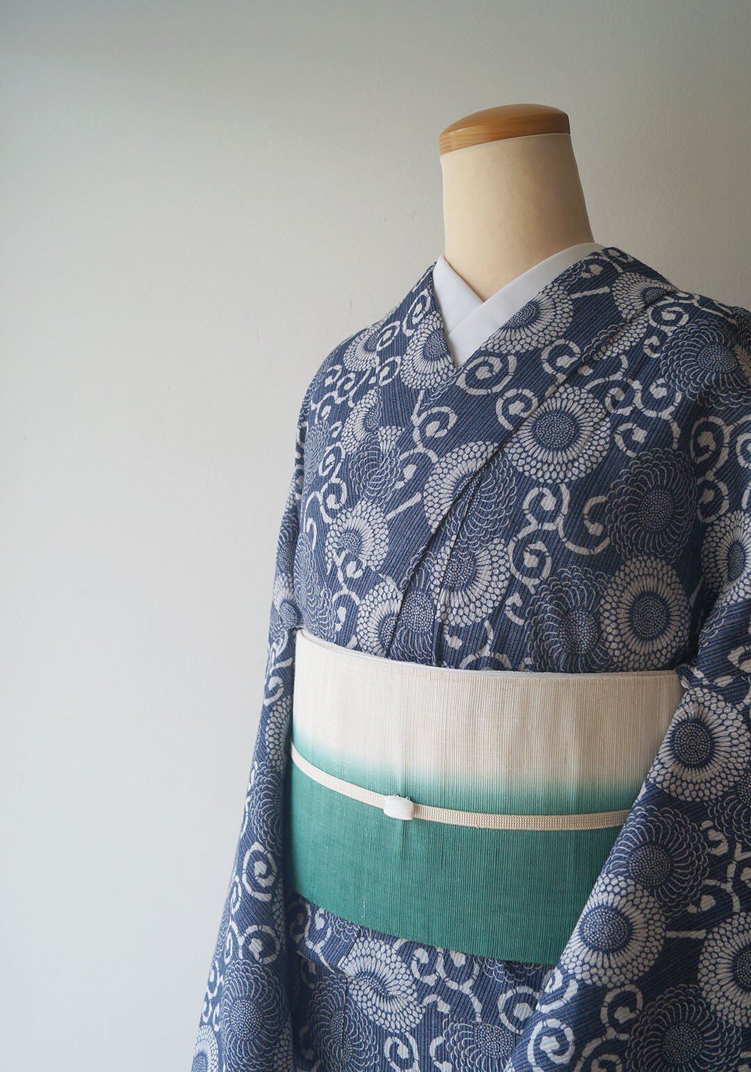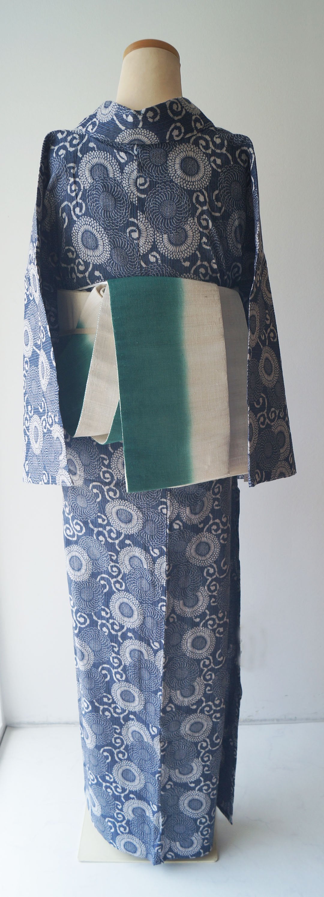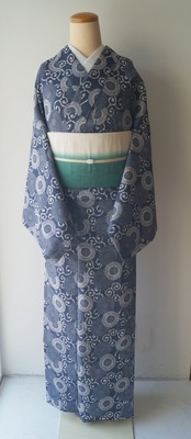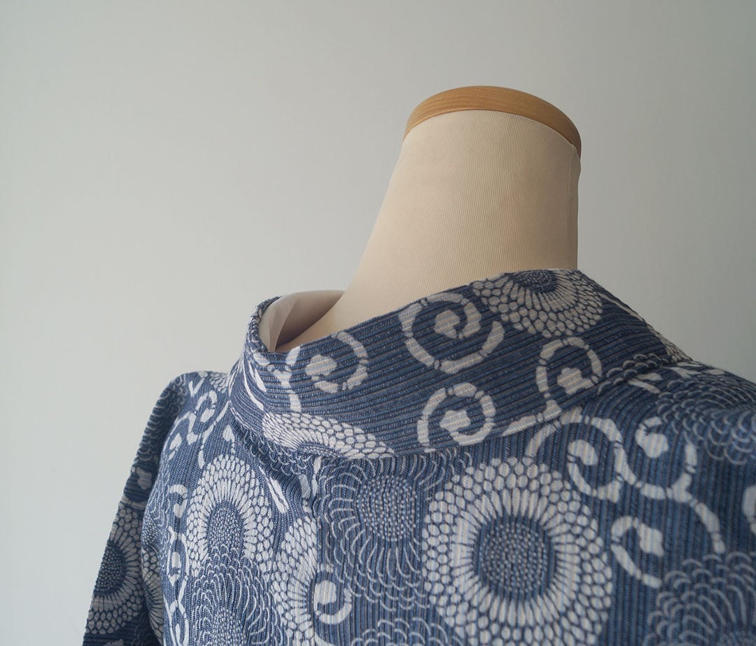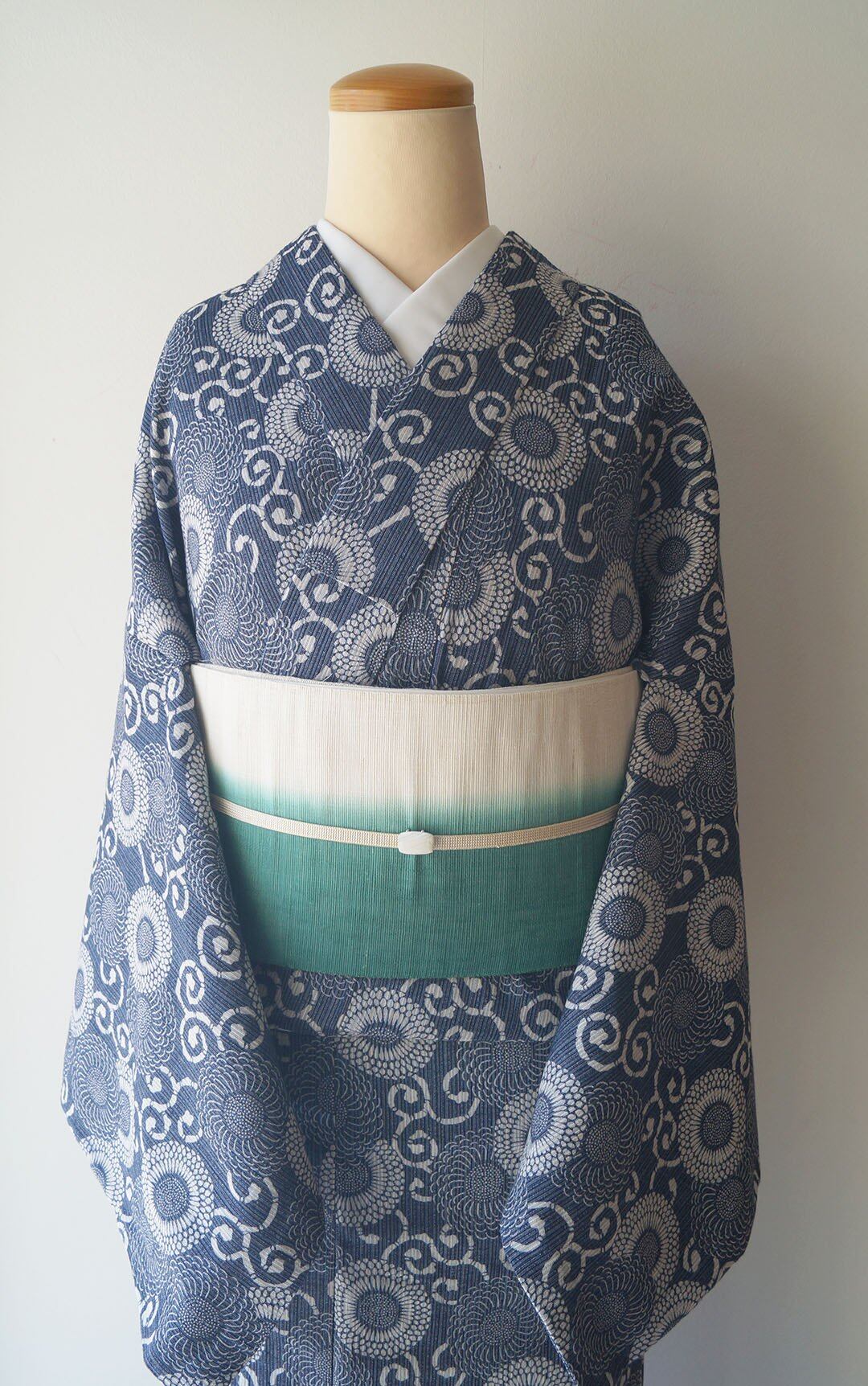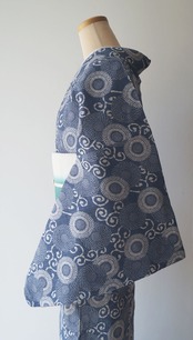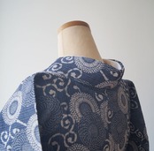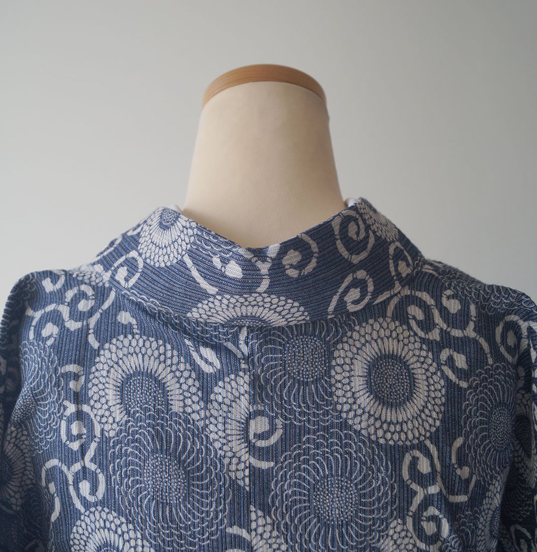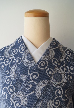 【浴衣】藍色地 花唐草文 浴衣 2025