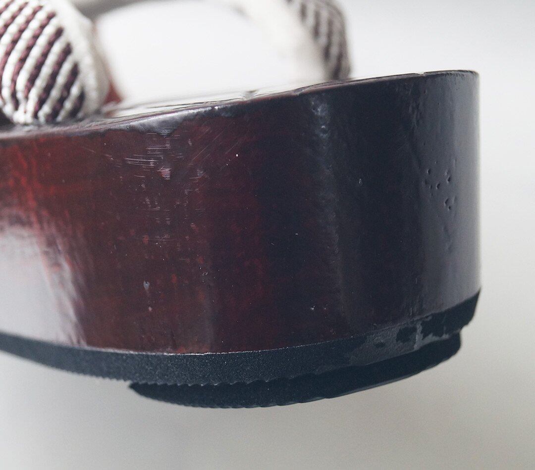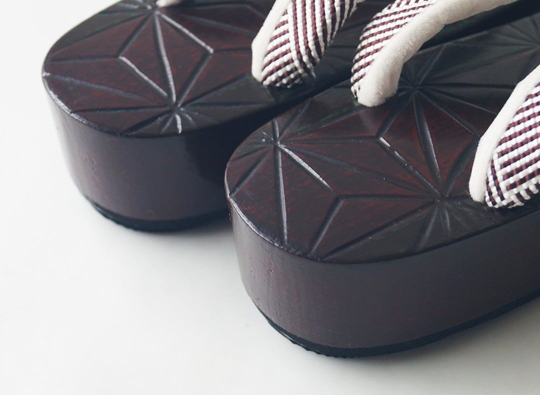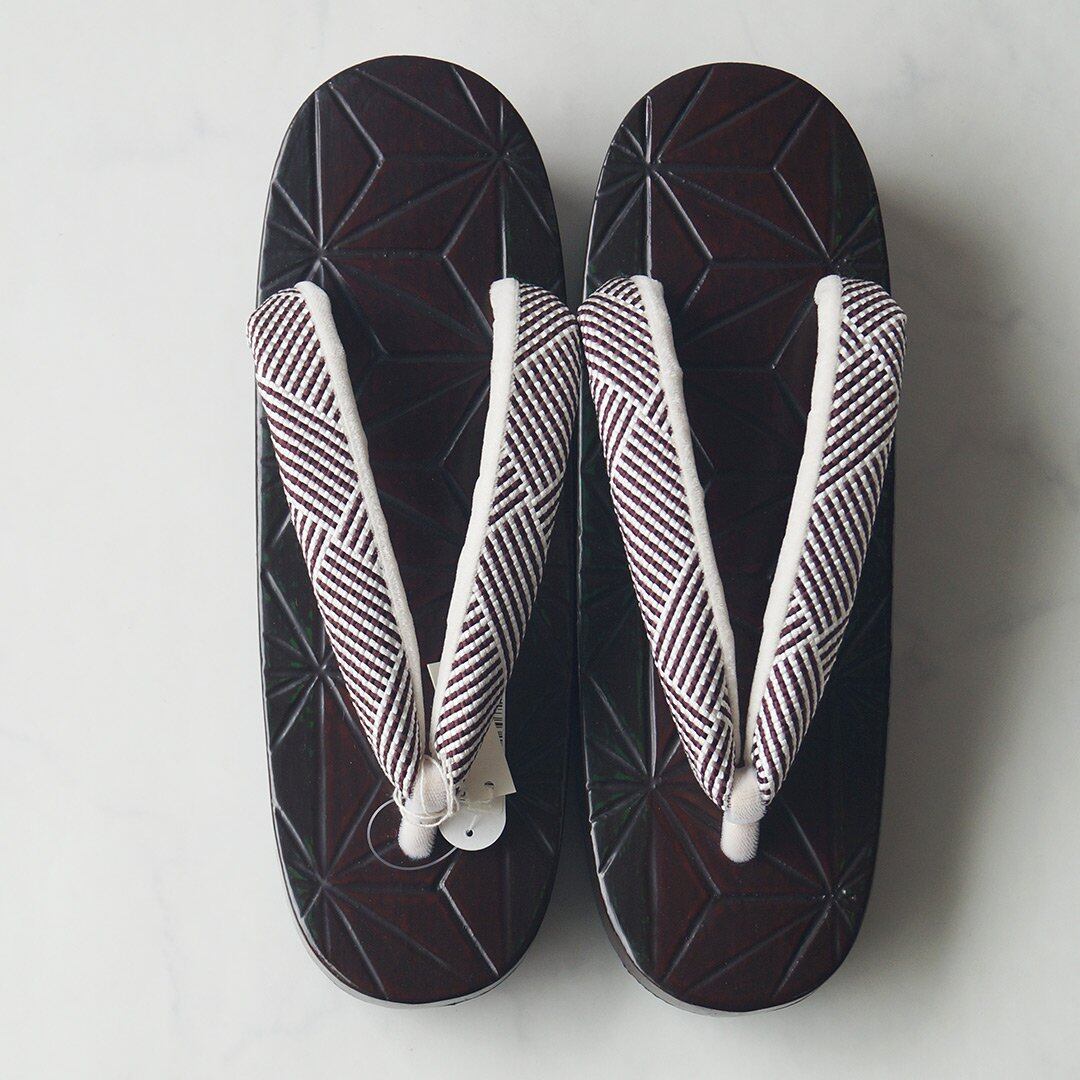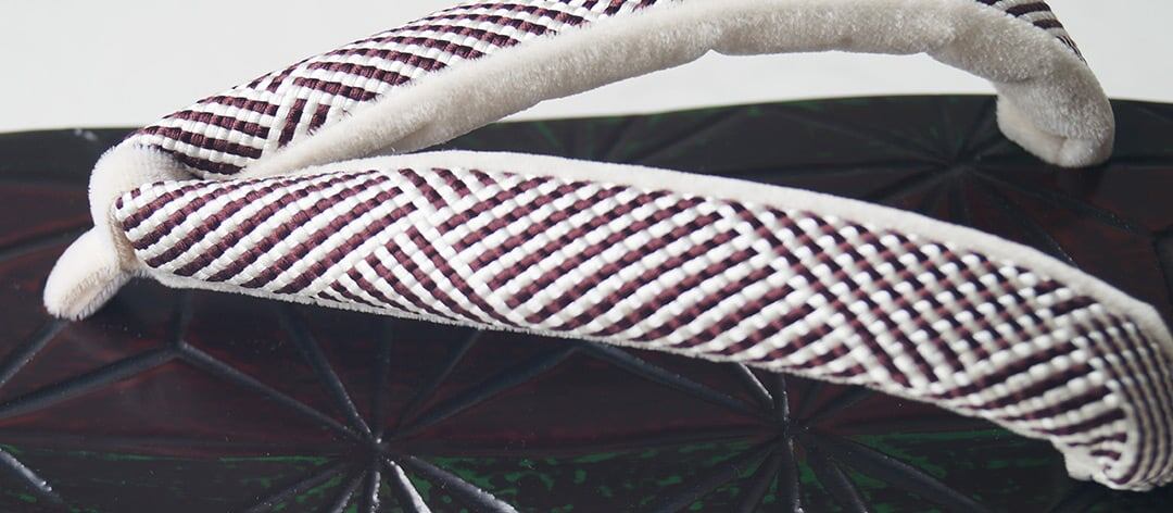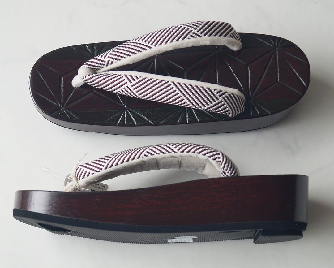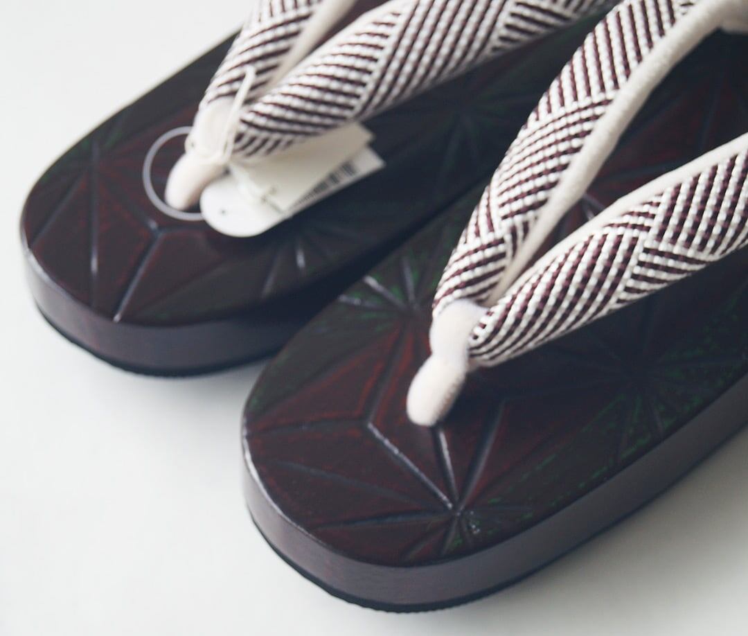 花緒は紫味の感じられる焦茶と