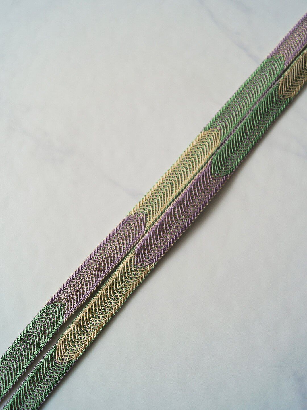 【和小物さくら・帯締め】浅黄色×若竹色×浅紫色 矢羽根段切替レース 夏用帯締め No.250624㉑