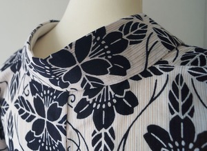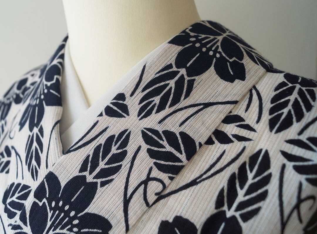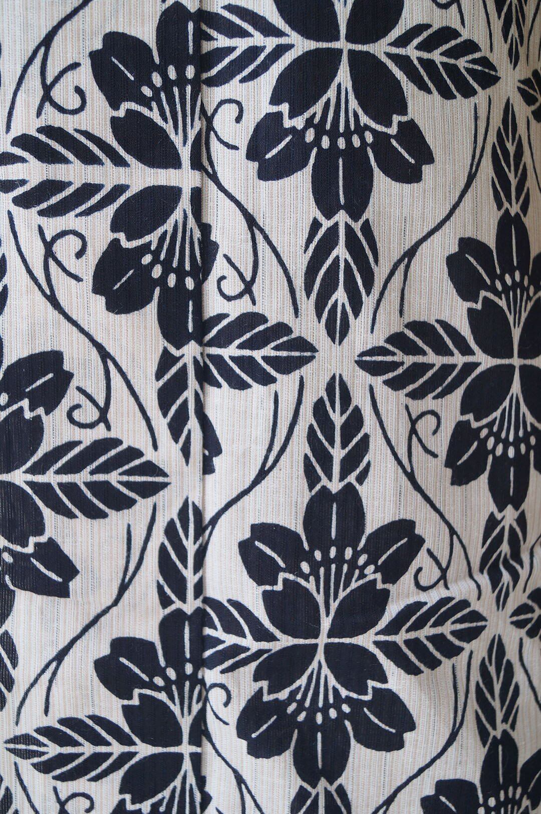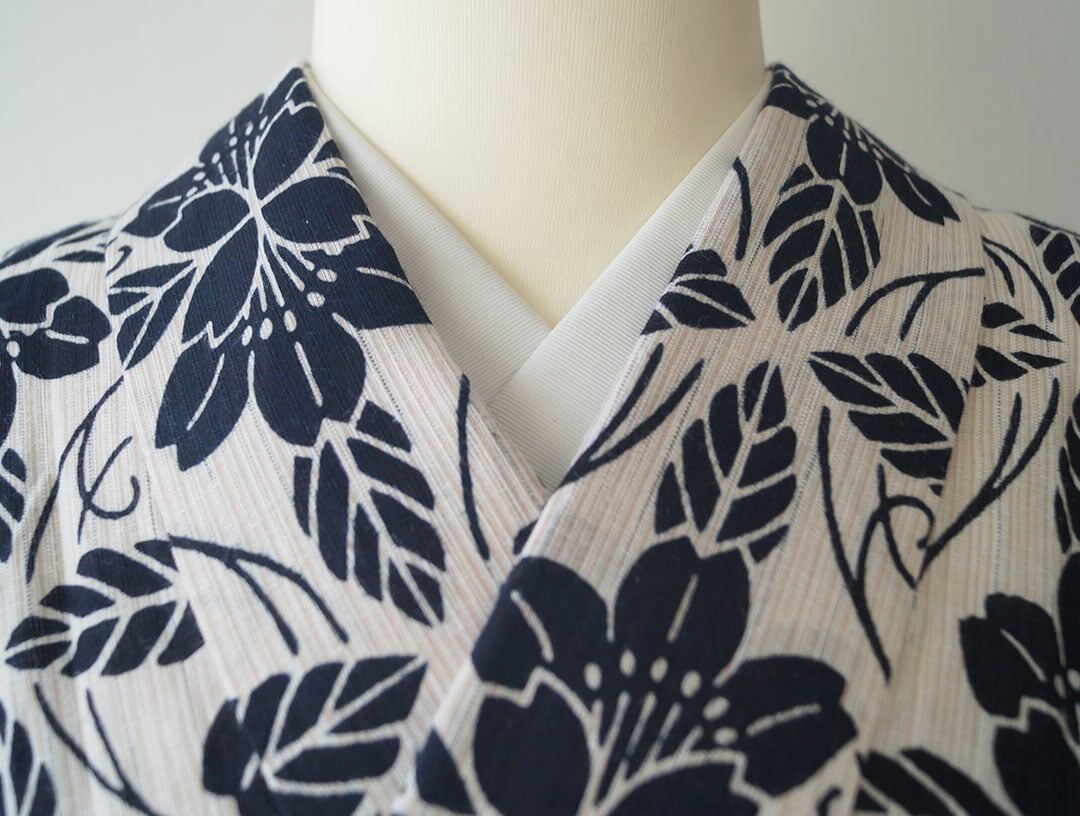 【浴衣】白色系地 立涌に花菱文 仕立て下ろし 綿麻しじら 浴衣