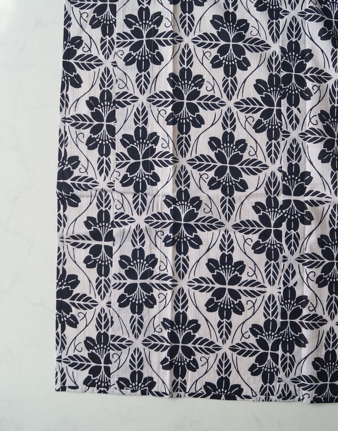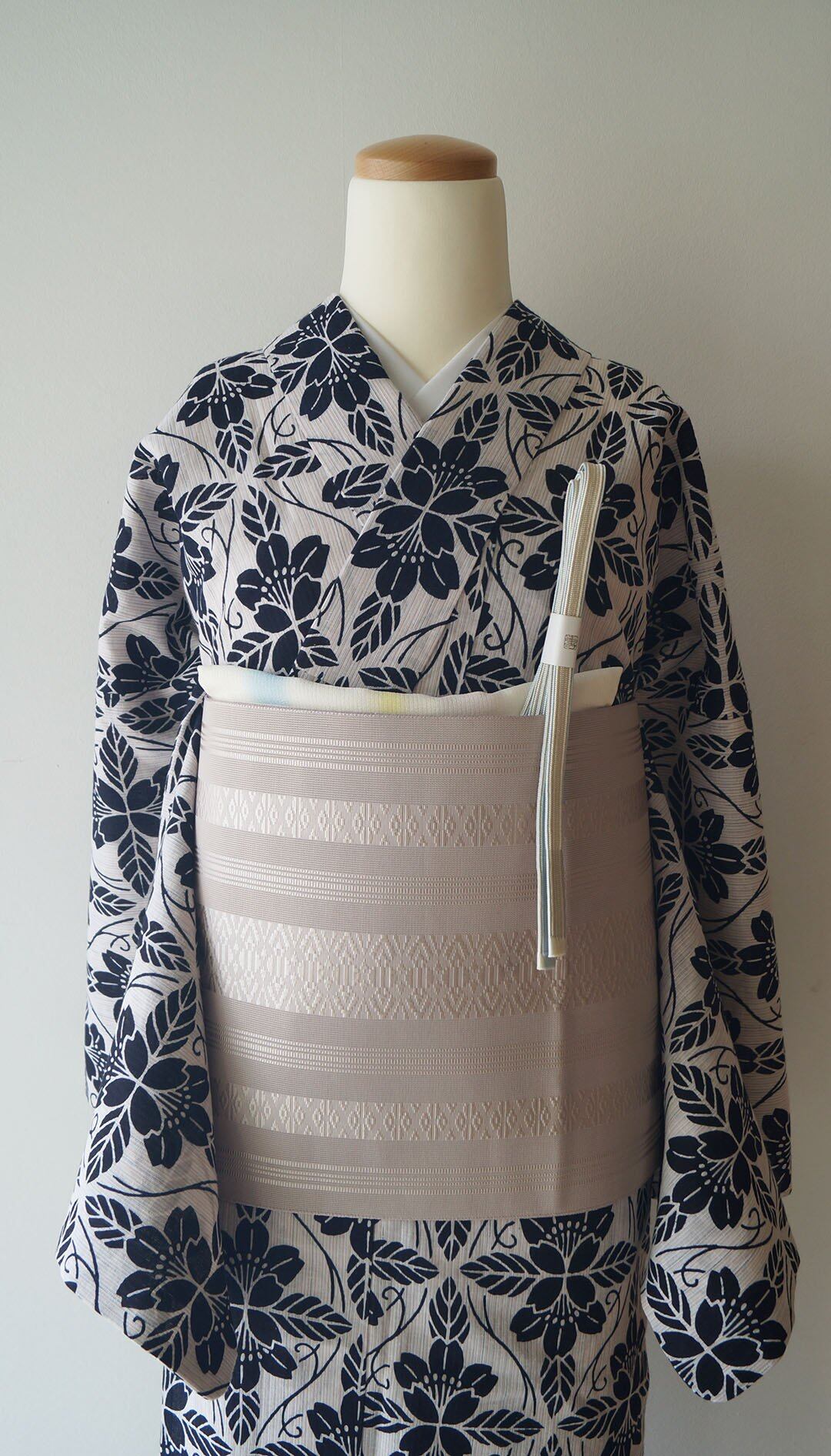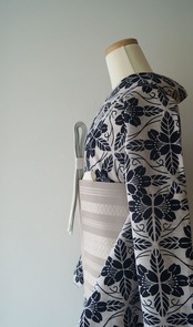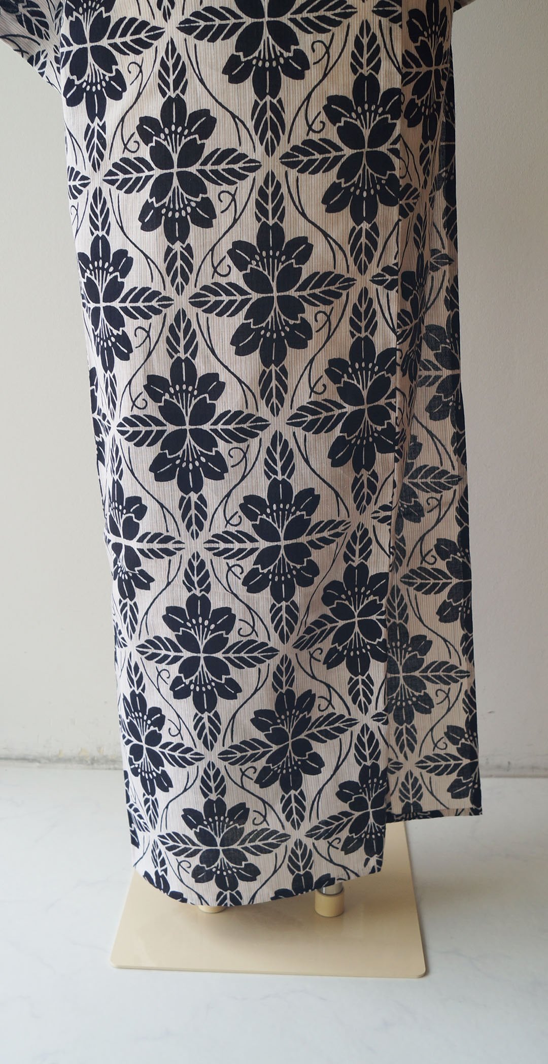 【浴衣】白色系地 立涌に花菱文 仕立て下ろし 綿麻しじら 浴衣