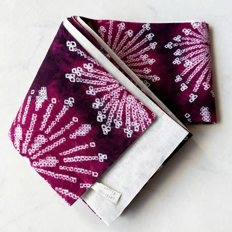 鹿の子絞りの幾何学文様と水玉