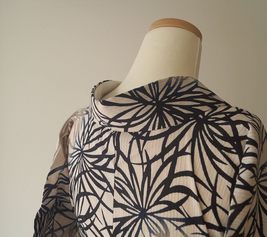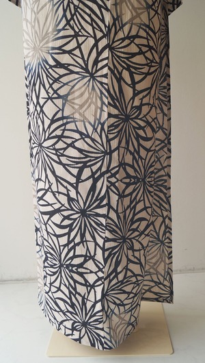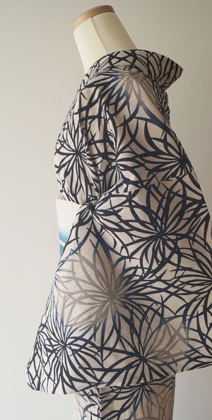 【浴衣】注染 生成り色地 抽象花文 浴衣