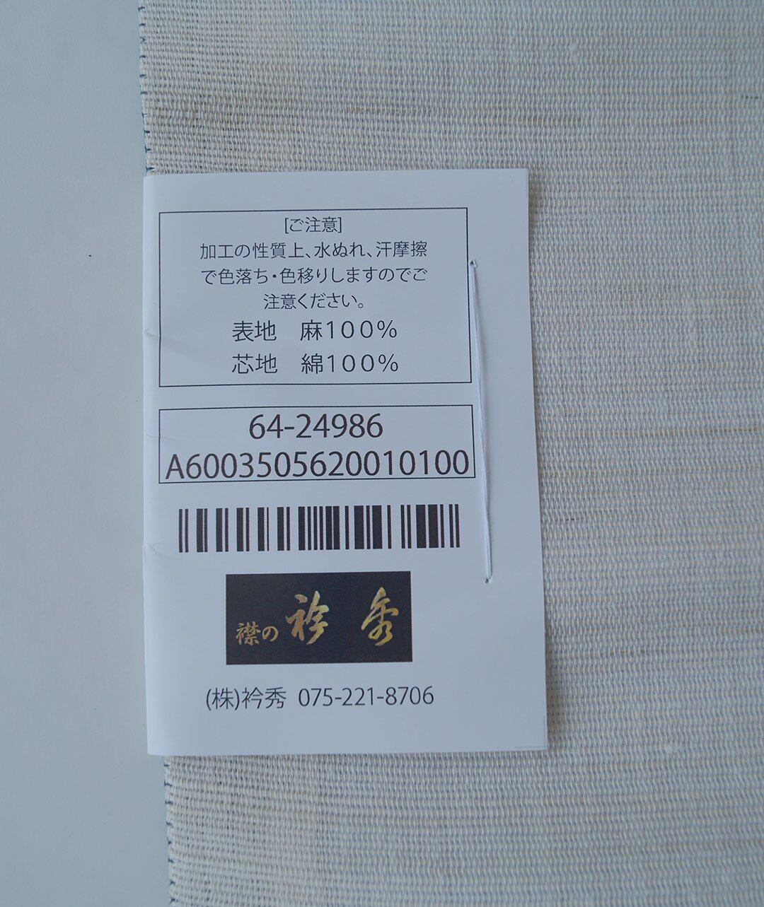・麻生地特有の、糸乱れがある箇所がございます。