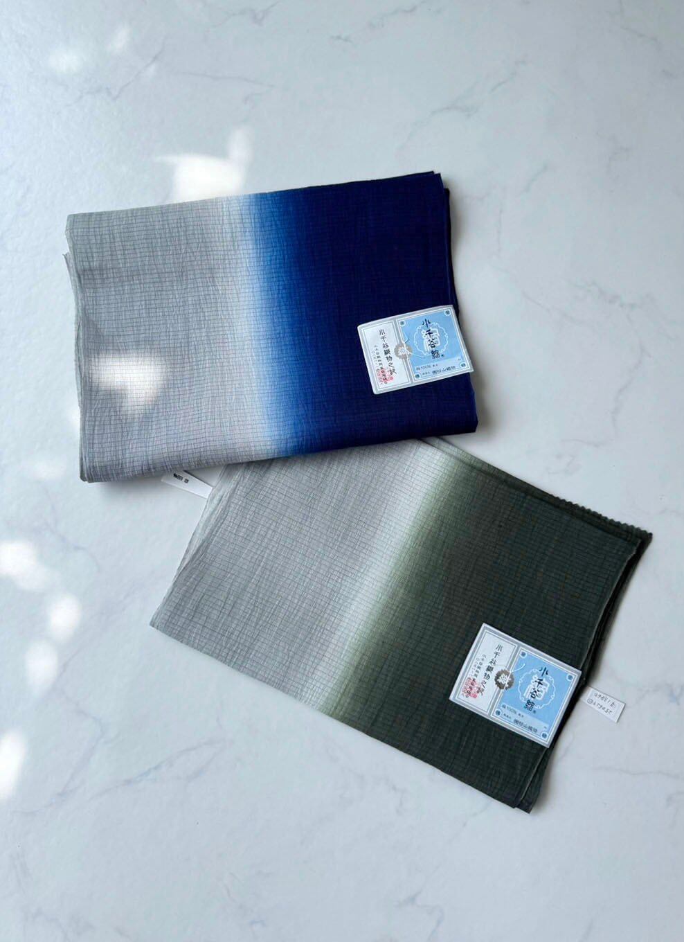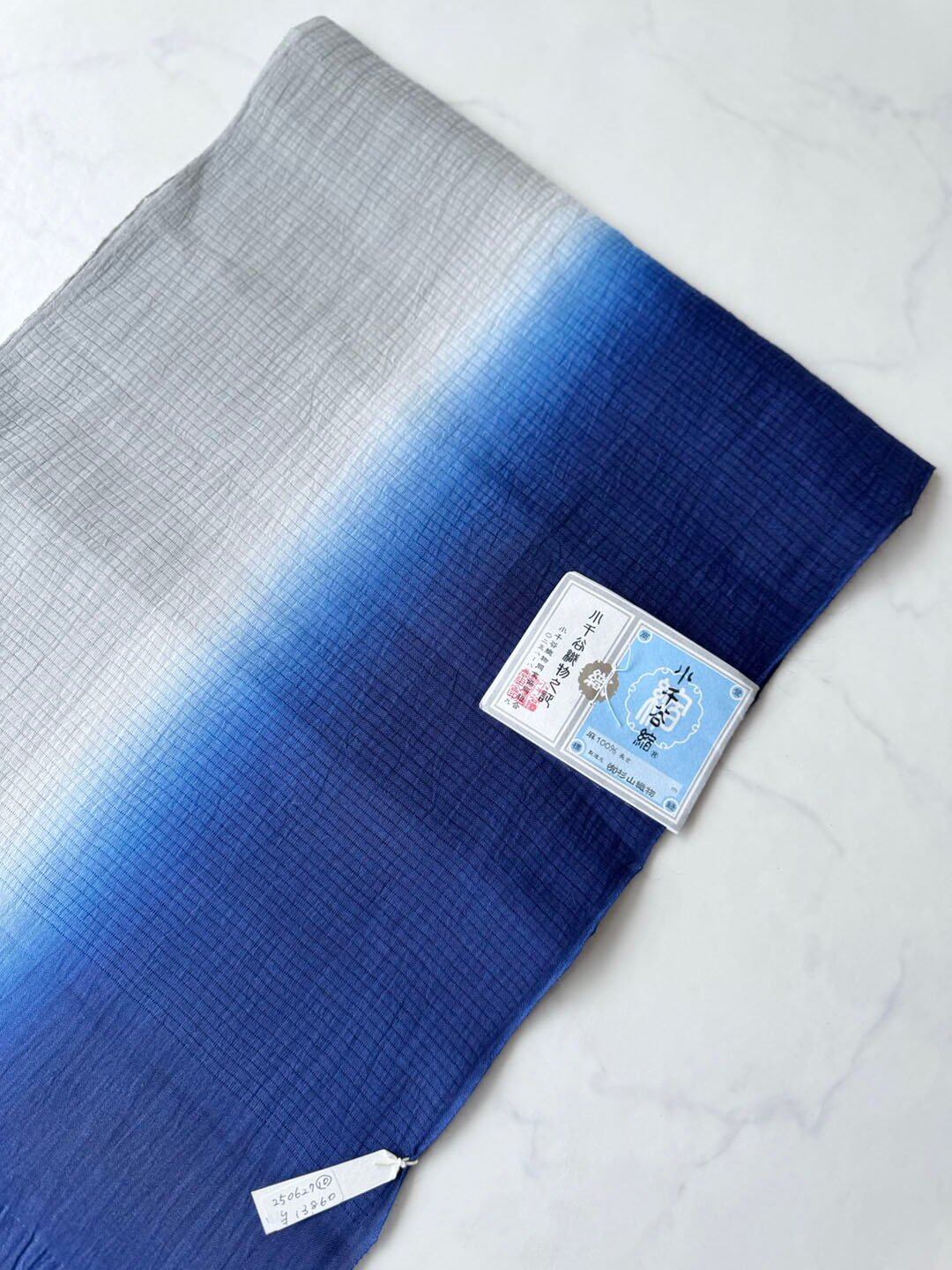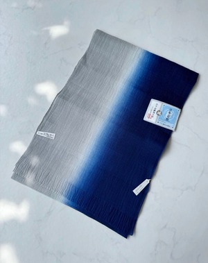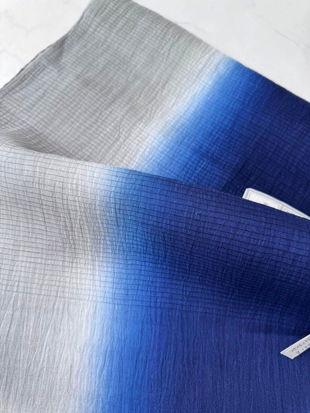 【帯揚げ】灰青×紺色 小千谷縮 二色暈し帯揚げ 250627⑩
