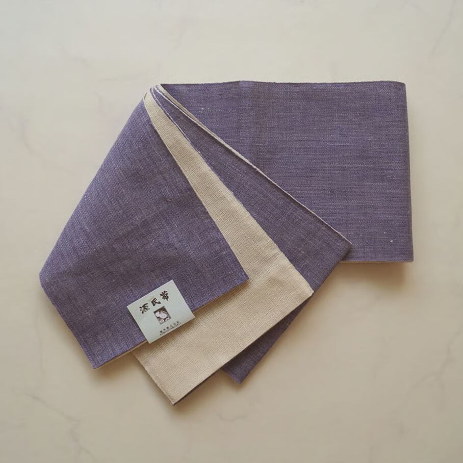 【半幅帯】竜胆色 ×生成り リバーシブル 麻半幅帯 No.2501④