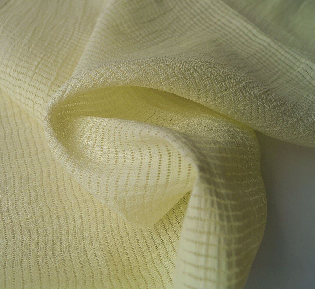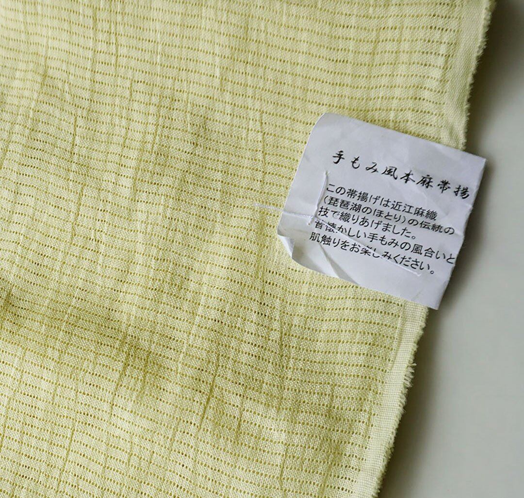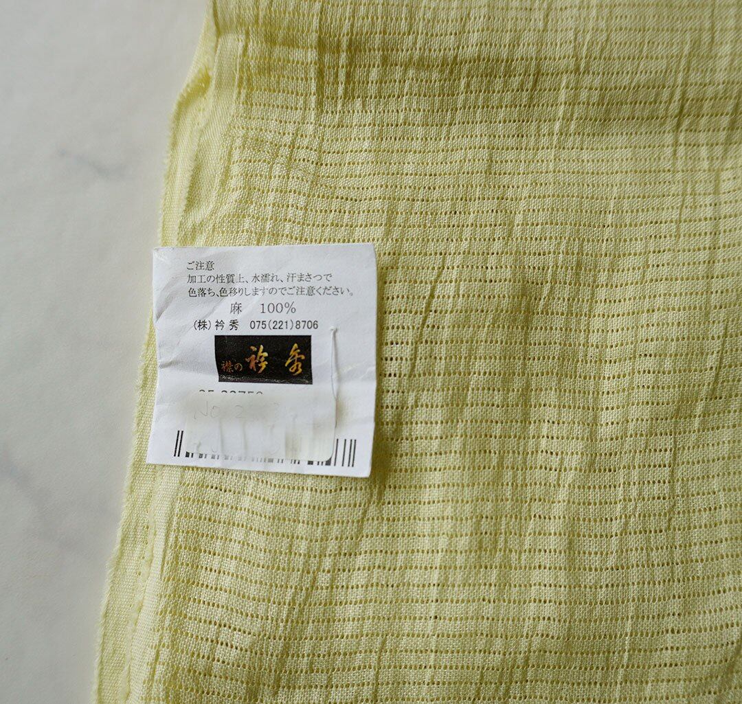 【帯揚げ】ライムイエロー色 無地 手もみ風 本麻 絽 帯揚げ No.250314-67