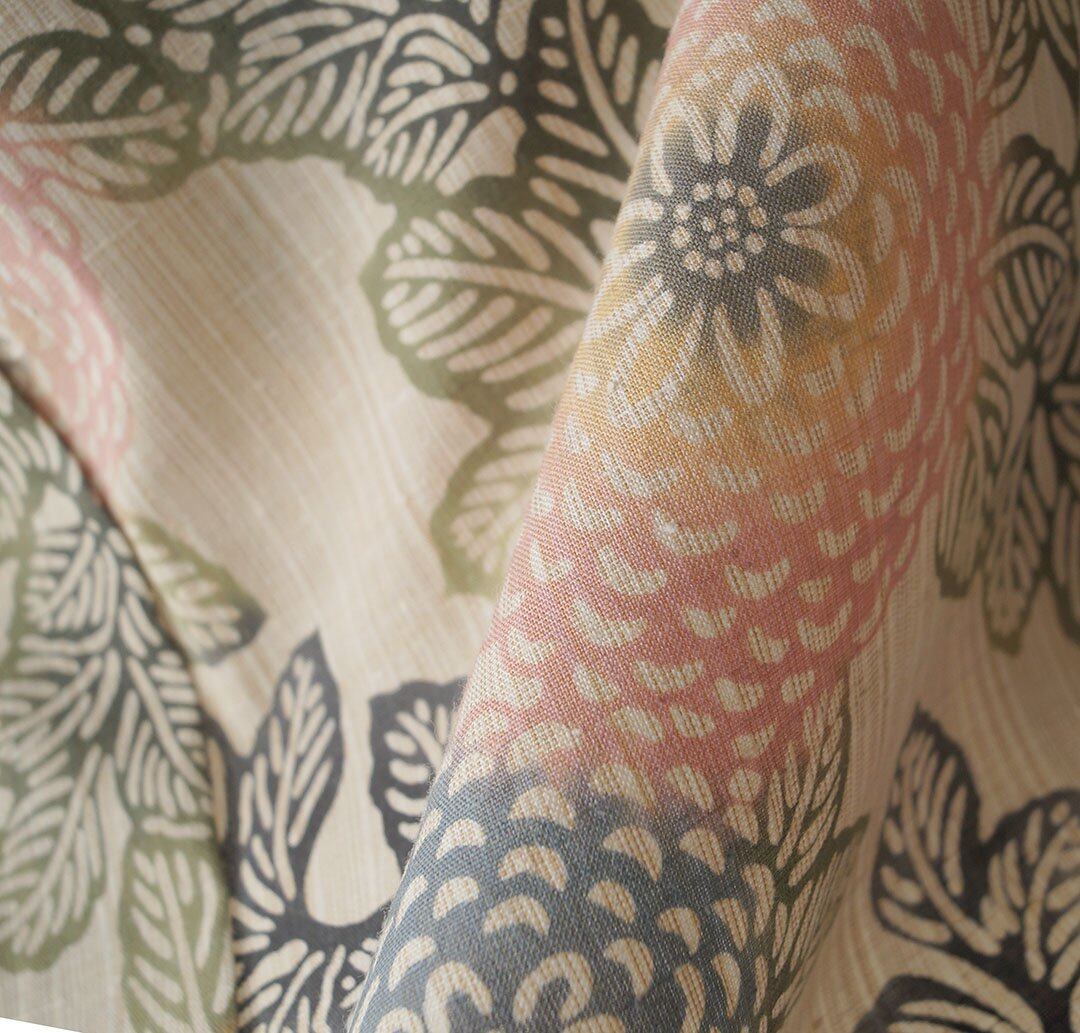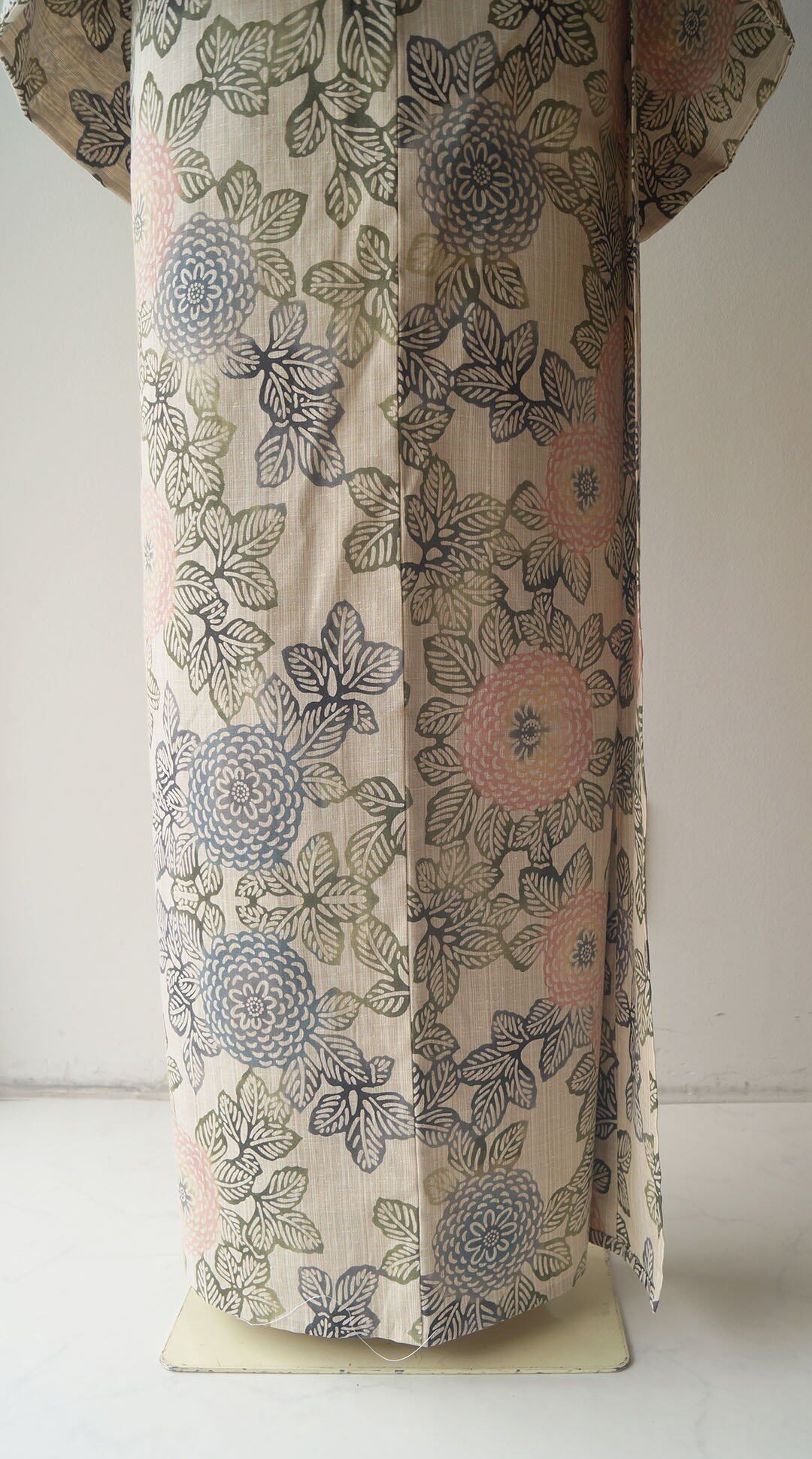 【三勝・浴衣】ベージュ色地 注染 万寿菊文 浴衣