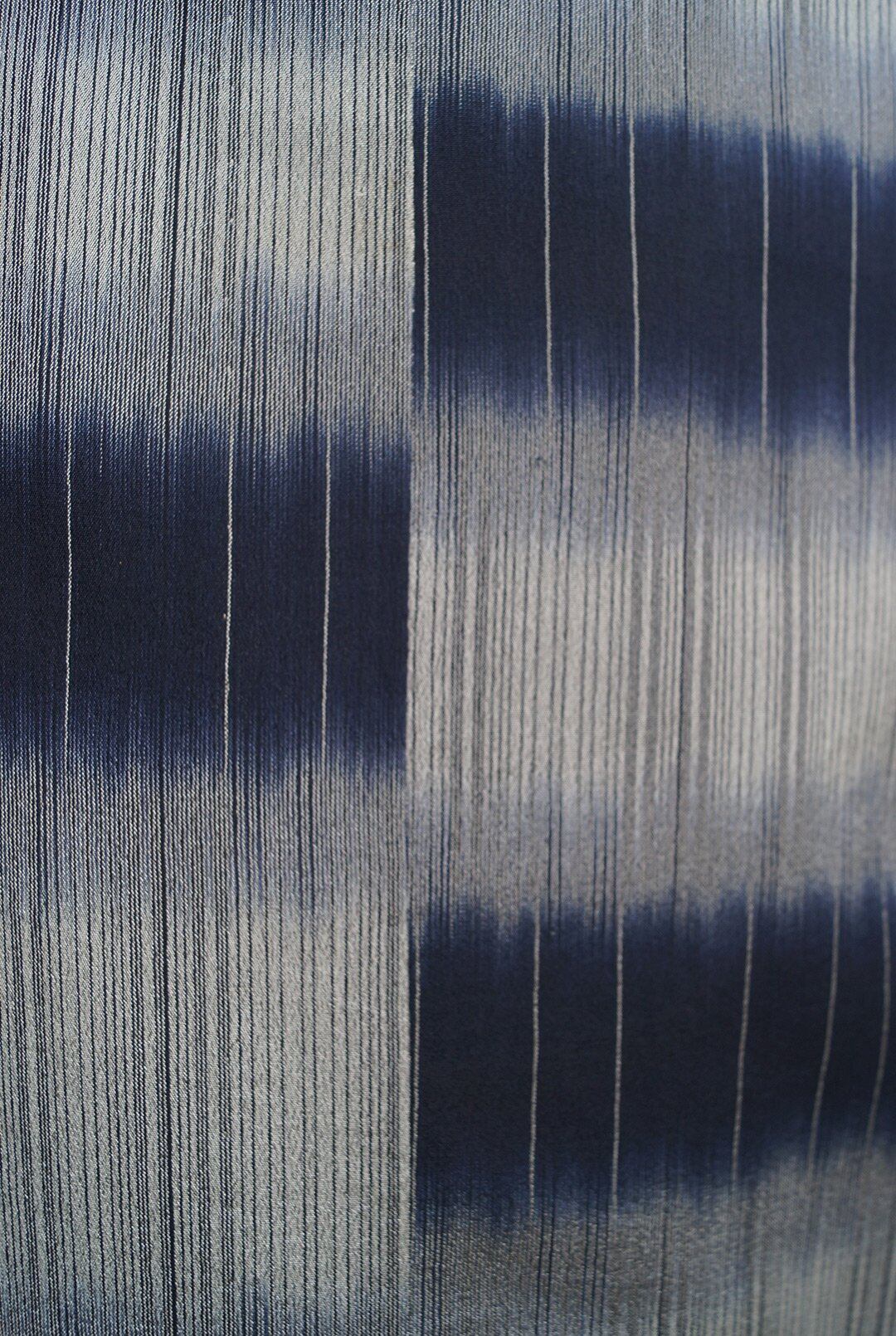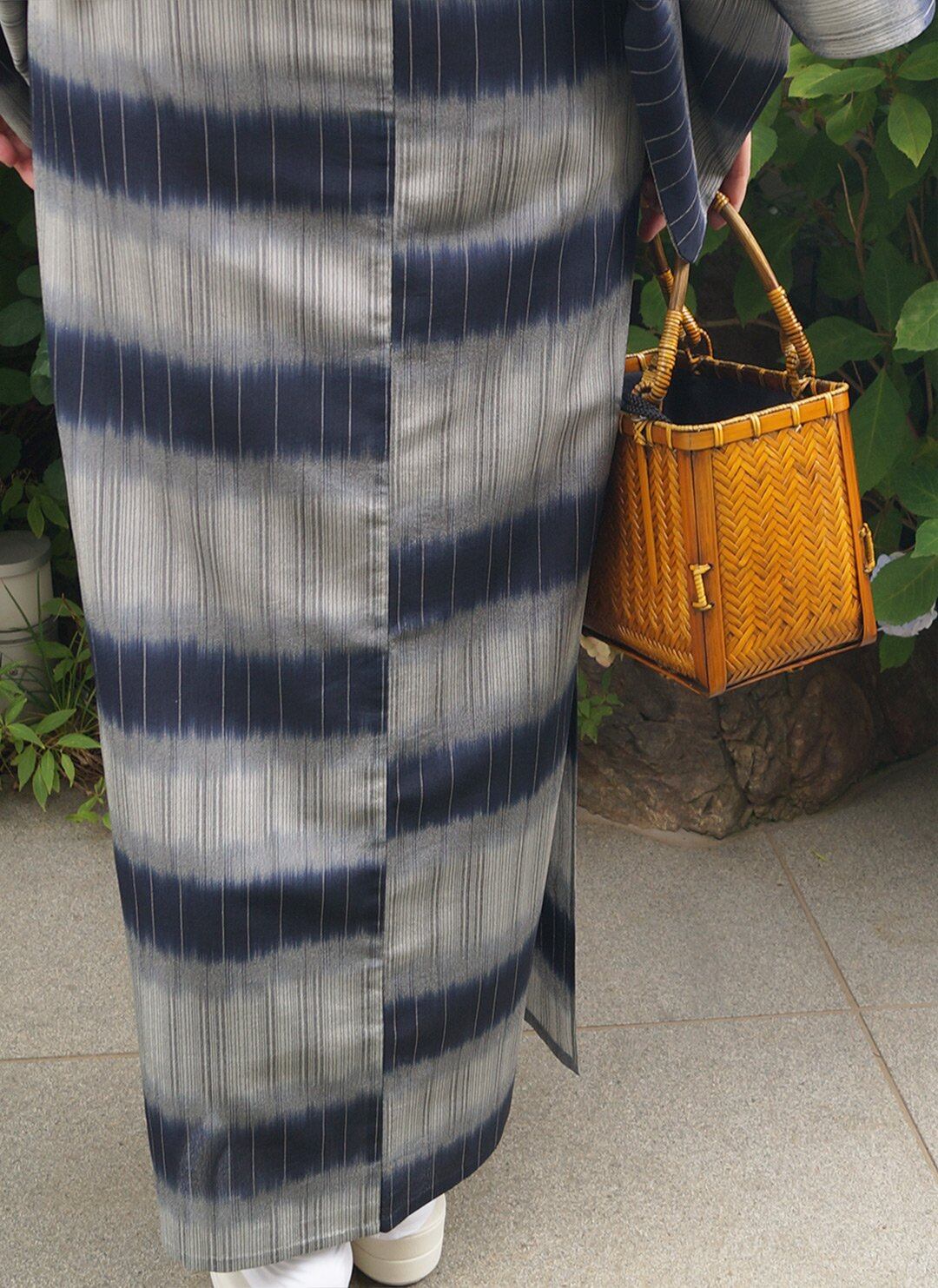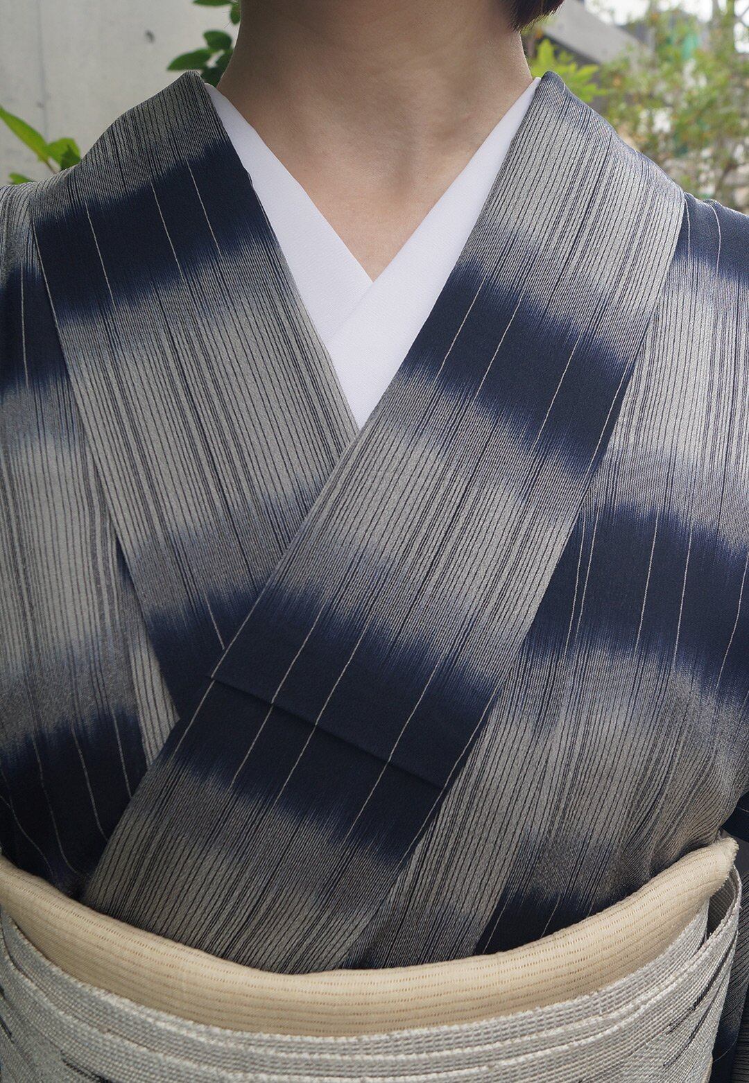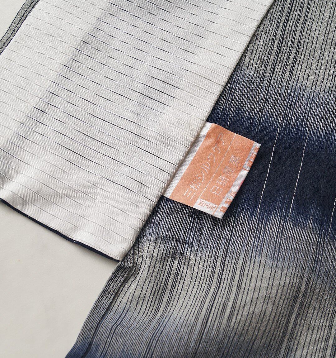 【夏きもの】鉄紺色×灰青色 擦れ横段 明石縮み