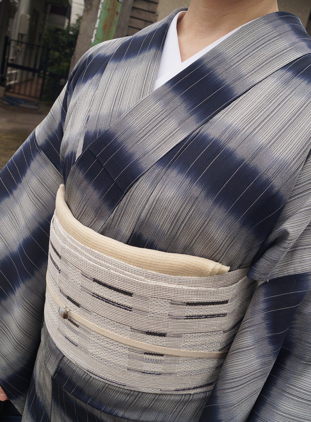 擦れ横段柄の明石縮みです。