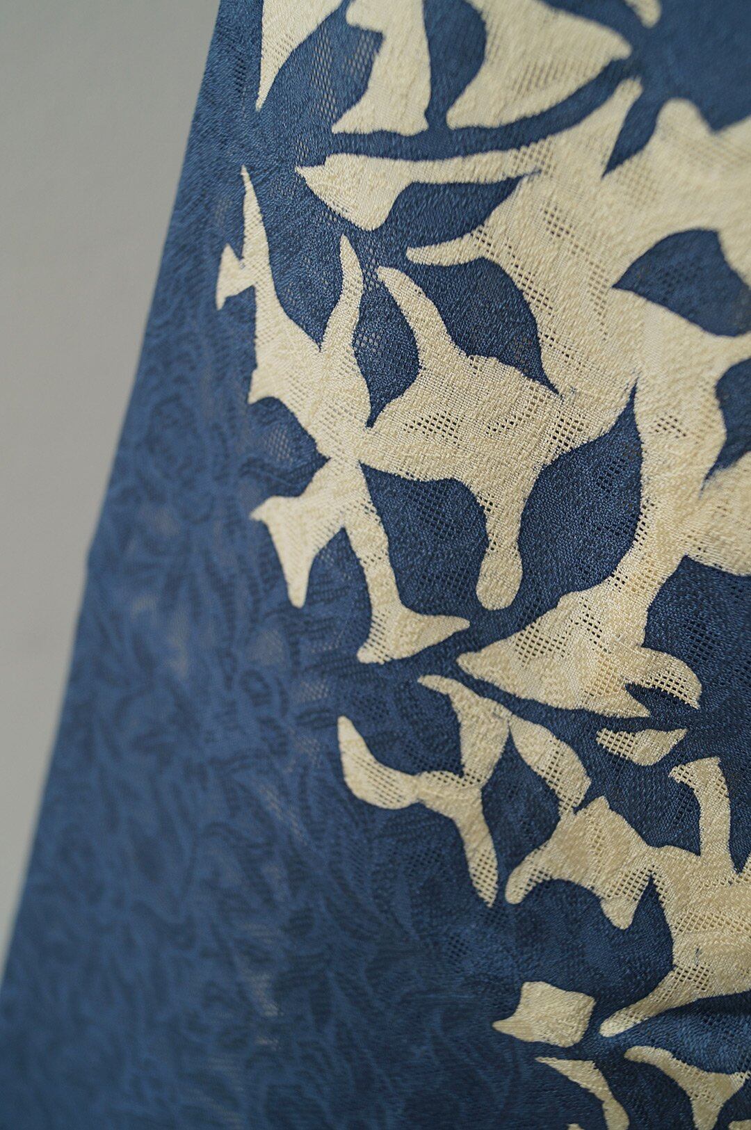 【夏・紗】留紺色 薔薇モチーフ 紗附下げ