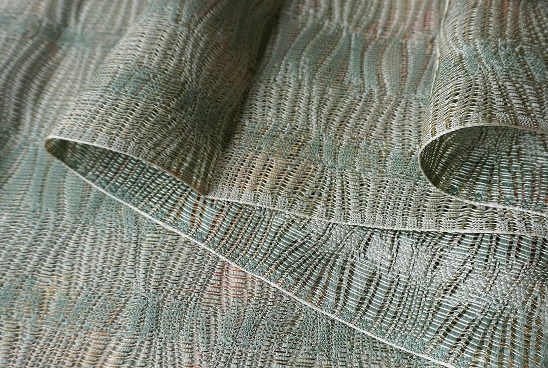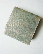 【夏なごや帯】青竹色×青磁鼠 曲線文 羅八寸なごや帯