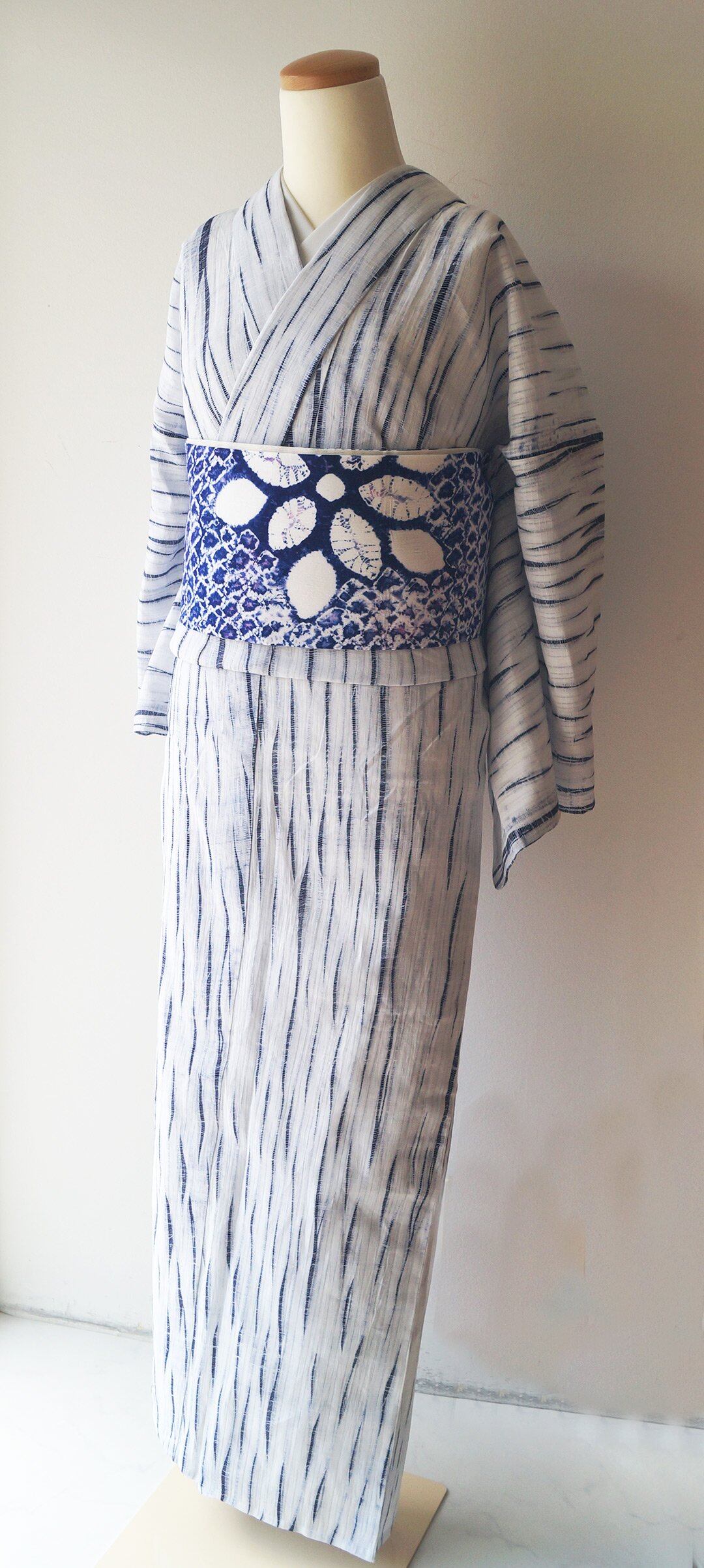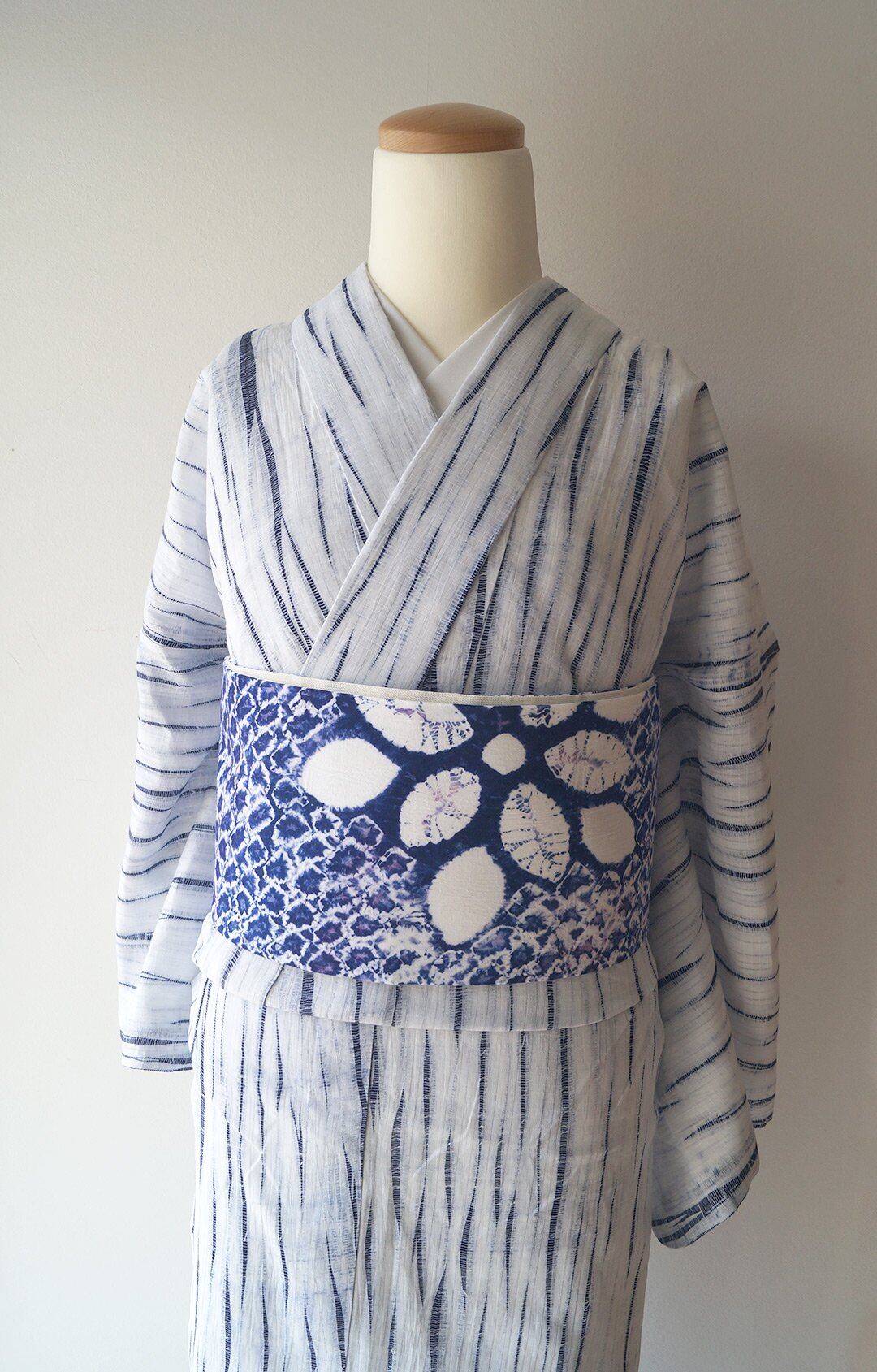 【有松絞り浴衣専門店つゆくさ・浴衣】白色×鉄紺色 竜巻絞り 浴衣 2025