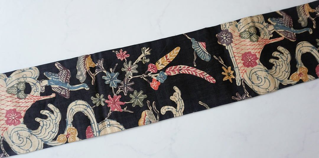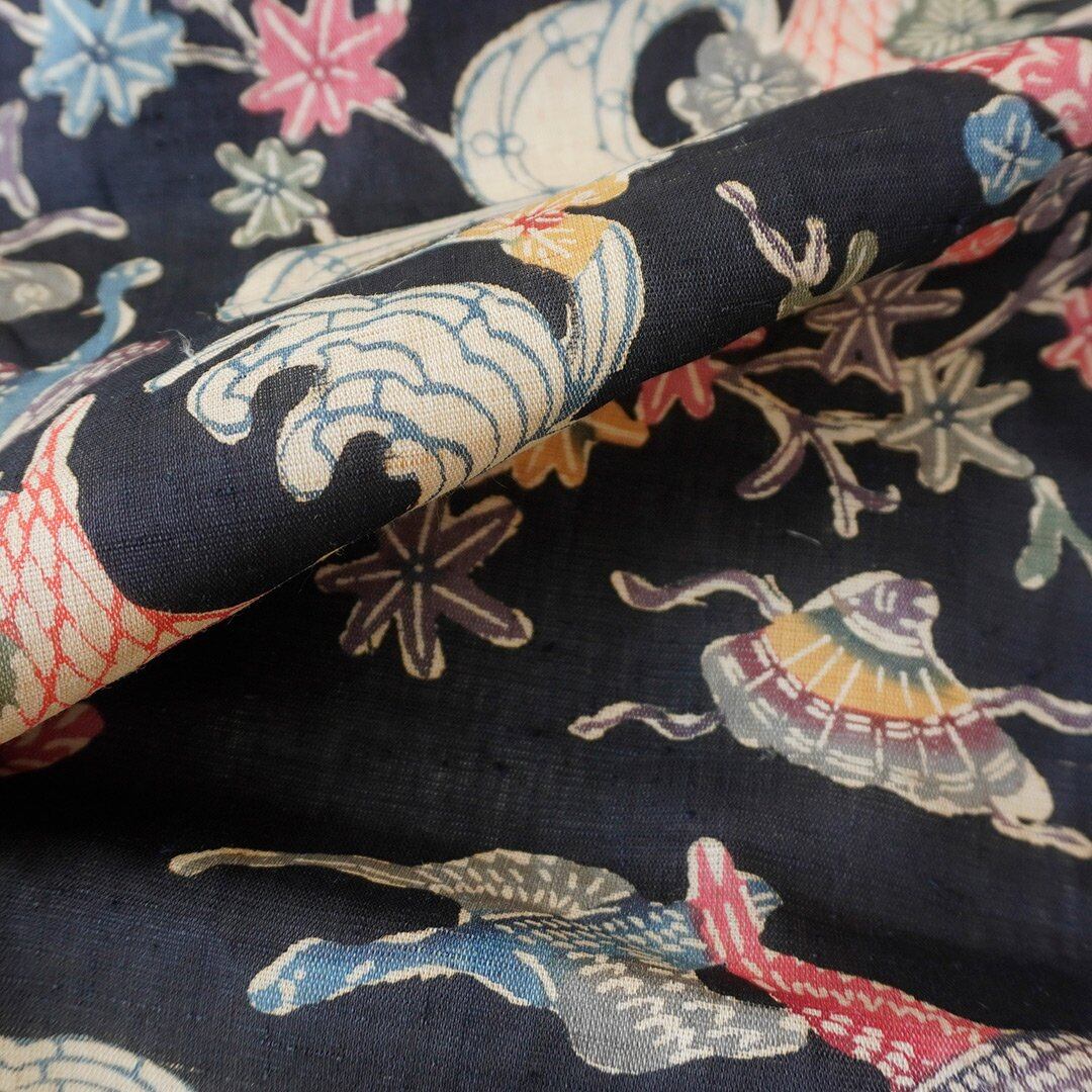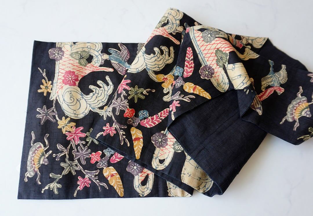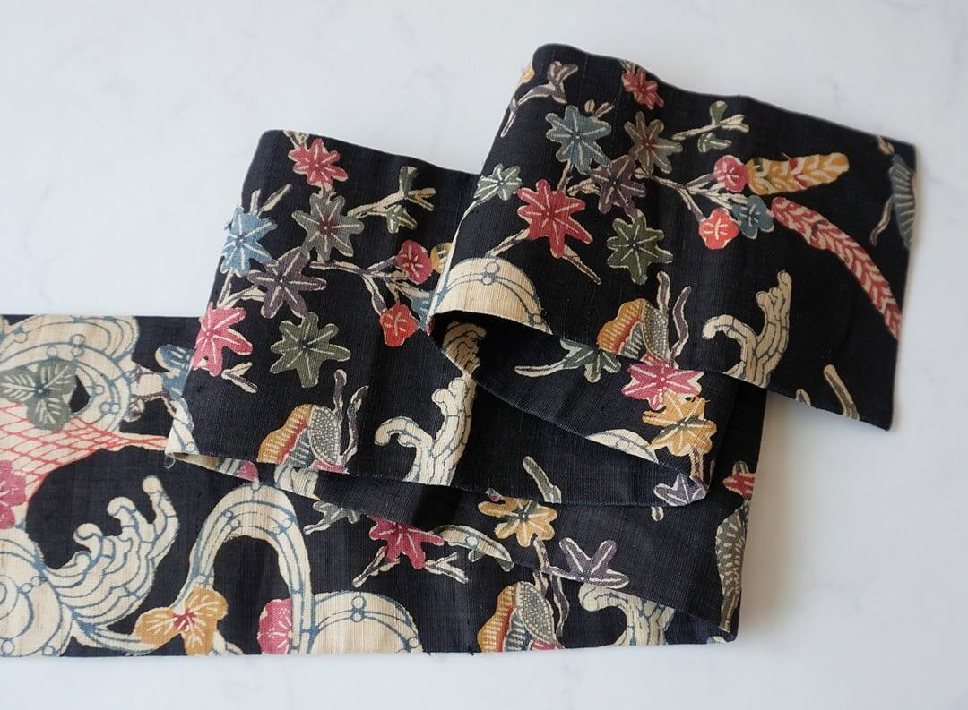【夏なごや帯】黒地 型染め 夏紬なごや帯